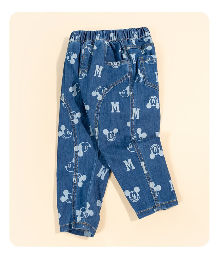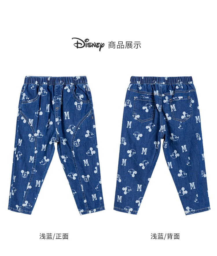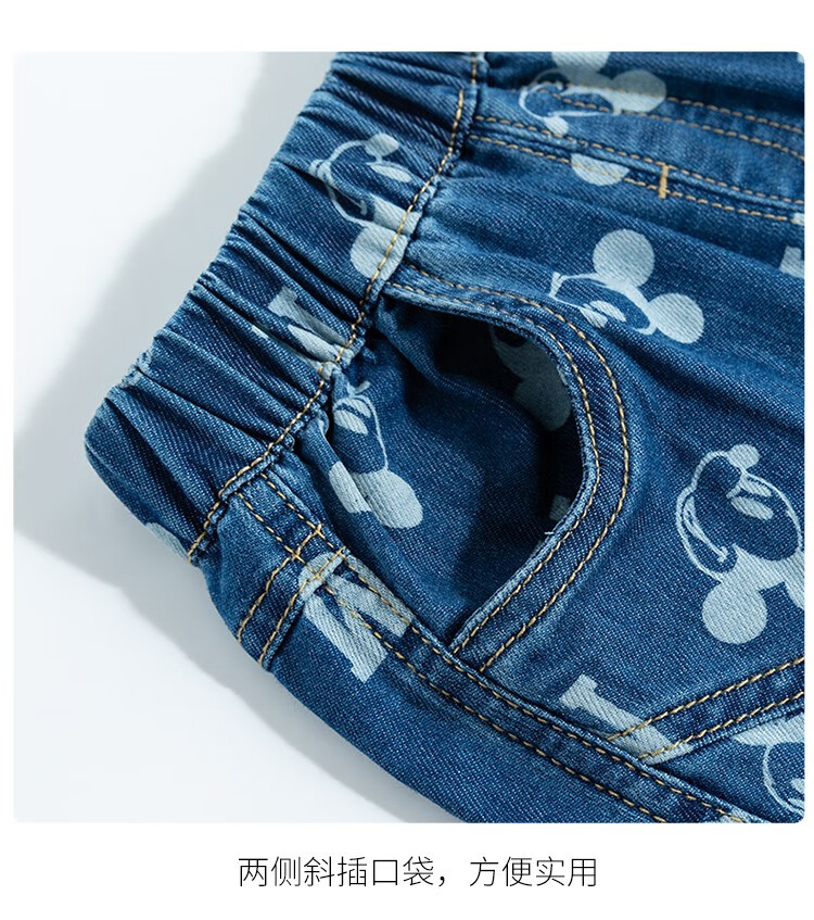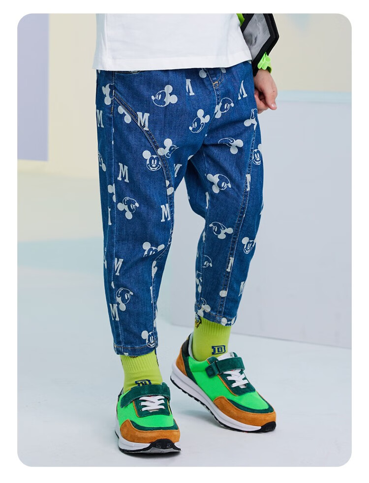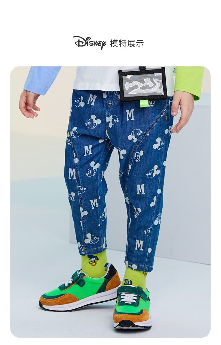 迪士尼童装春秋新品男童满印复古牛仔裤时尚潮酷长裤