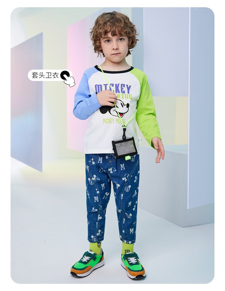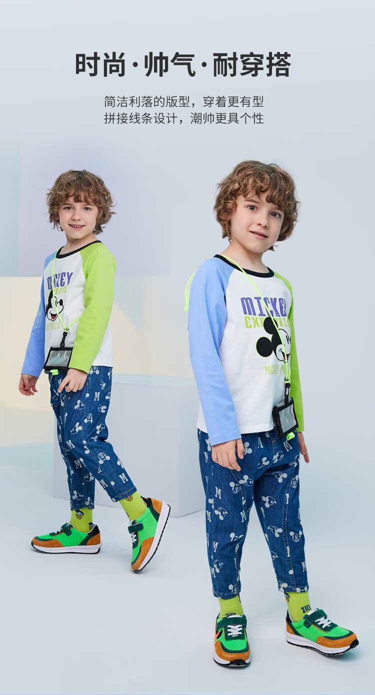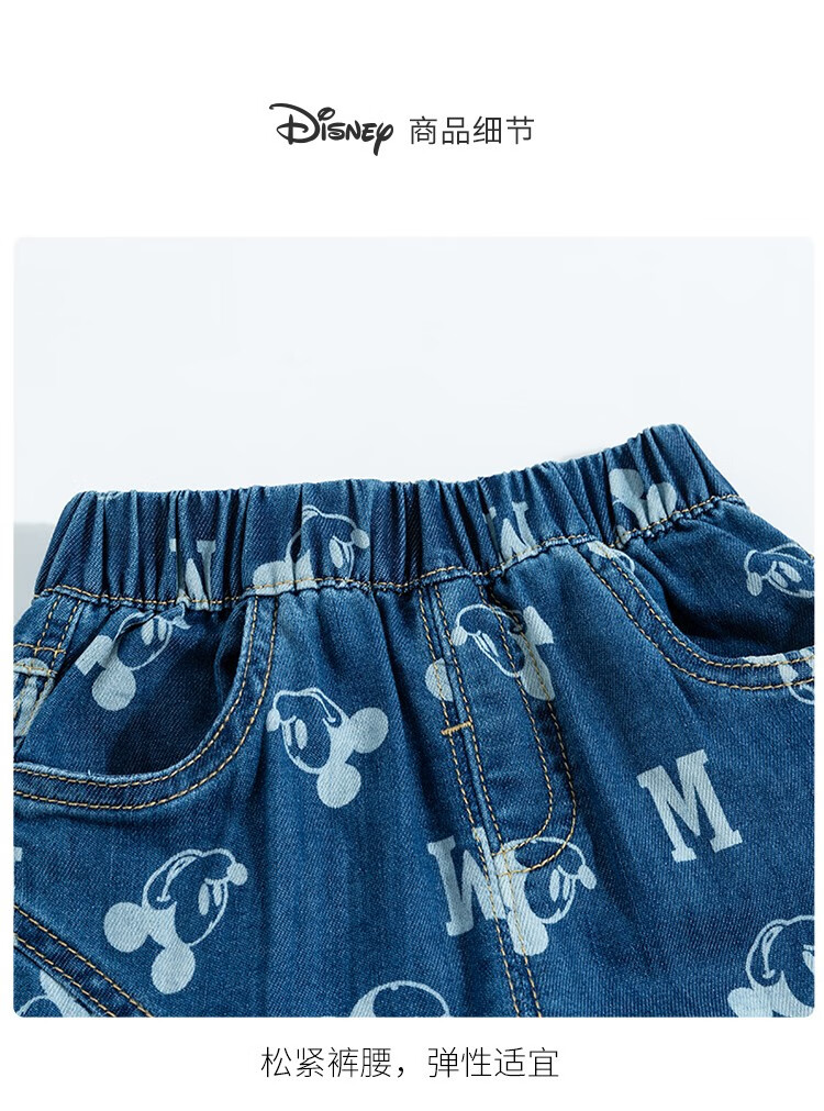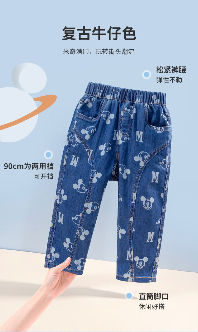迪士尼童装春秋新品男童满印复古牛仔裤时尚潮酷长裤
