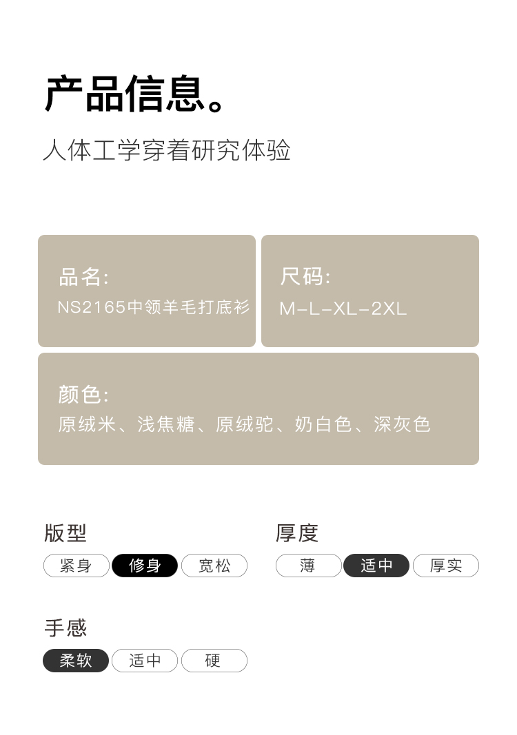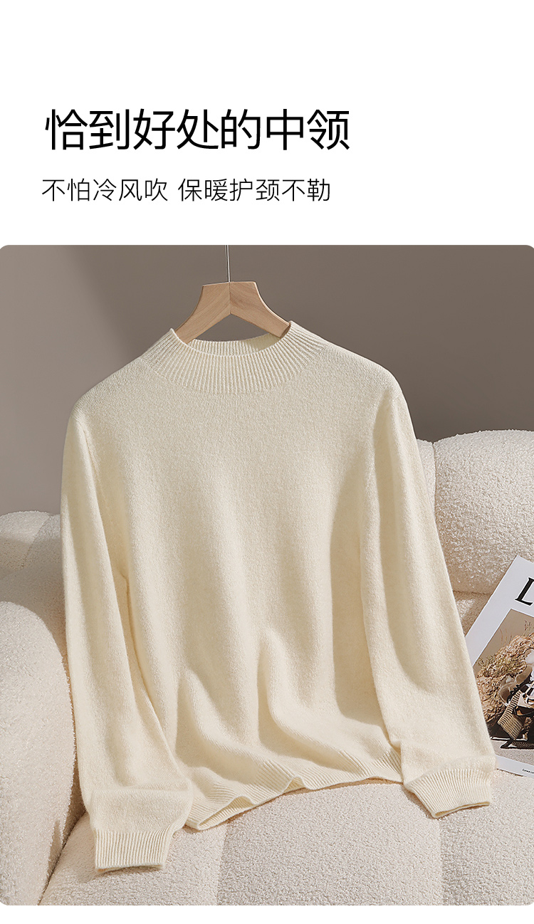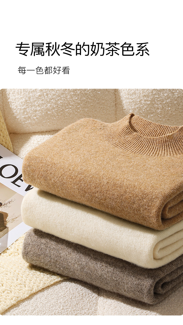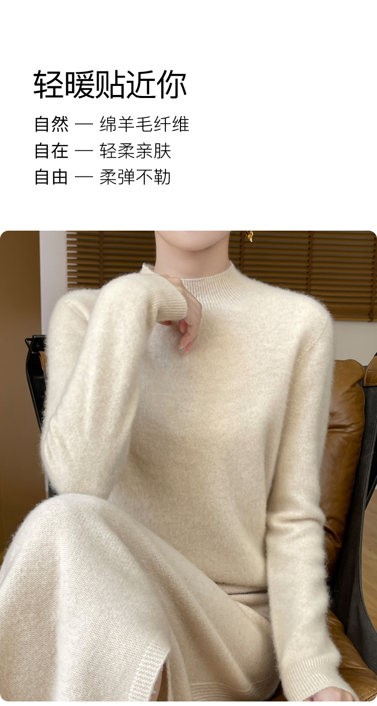 高级感内搭【100%绵羊毛】时尚中领打底衫女无缝舒适一体成型中领羊毛打底衫