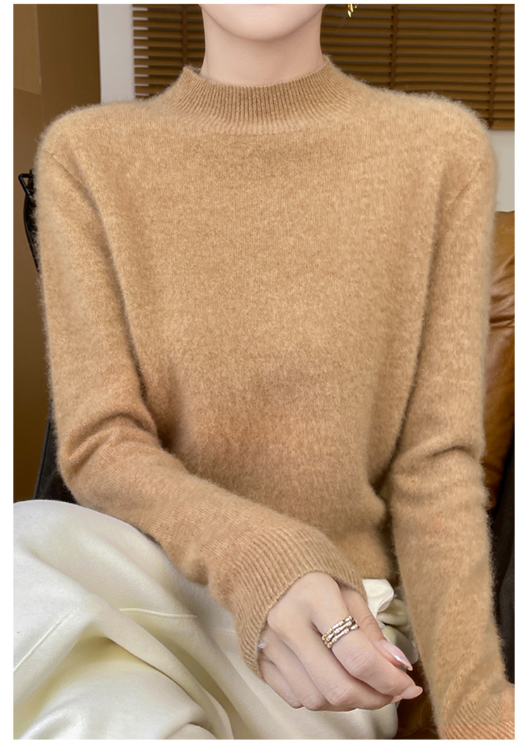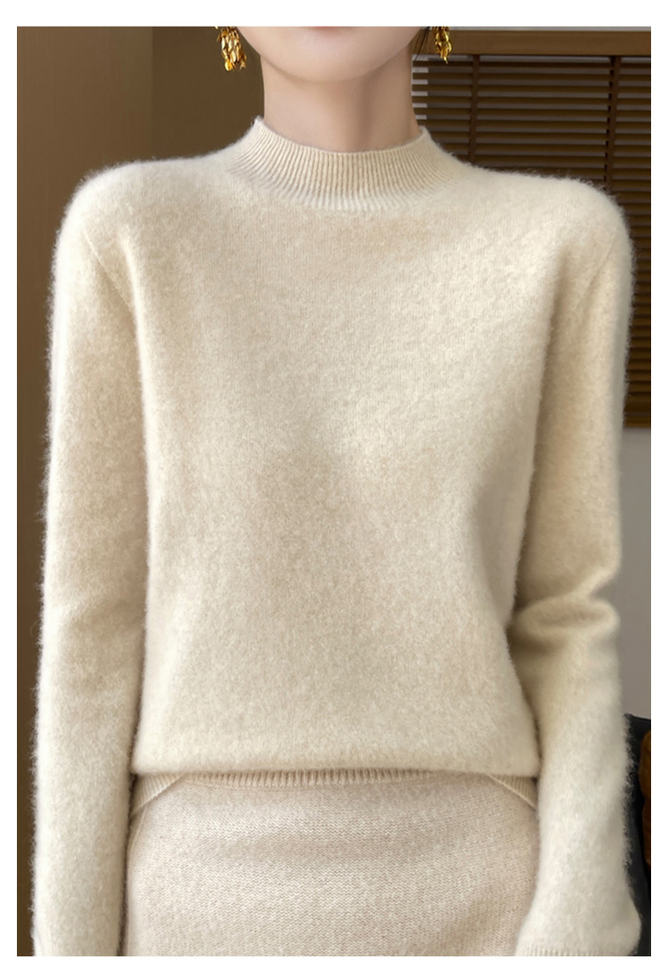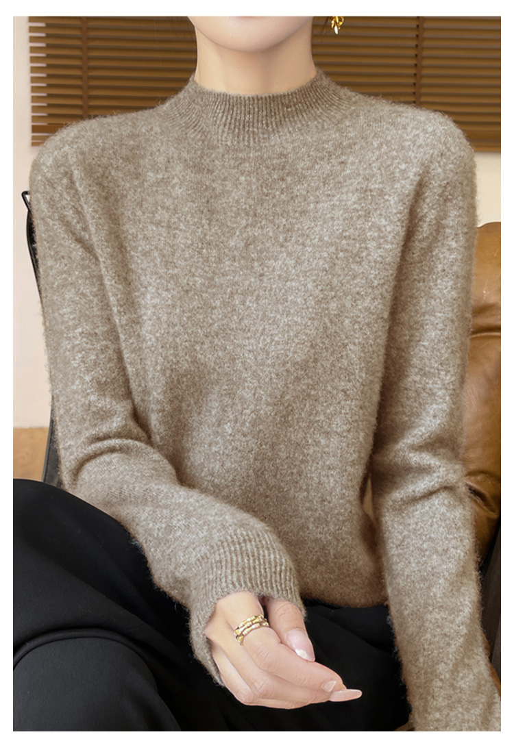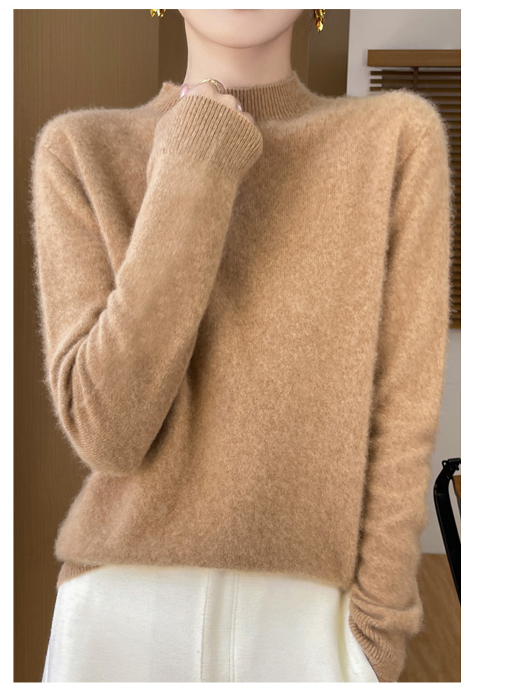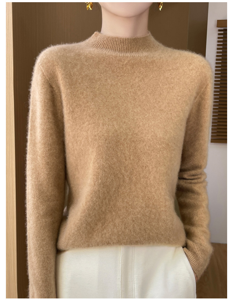 高级感内搭【100%绵羊毛】时尚中领打底衫女无缝舒适一体成型中领羊毛打底衫