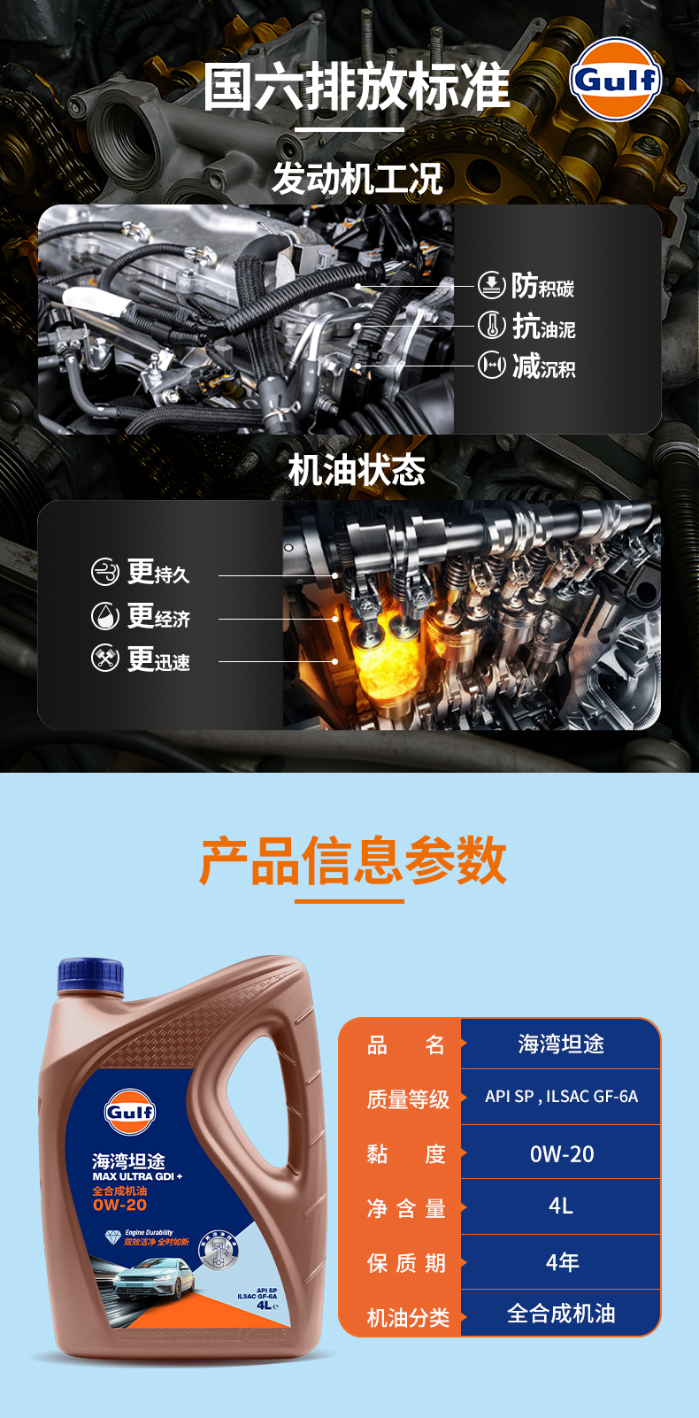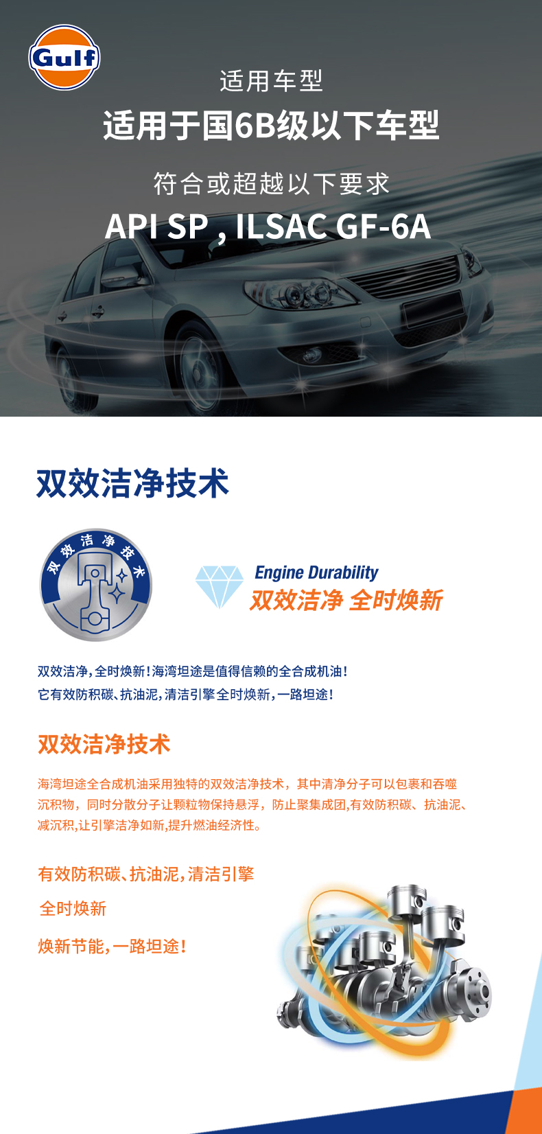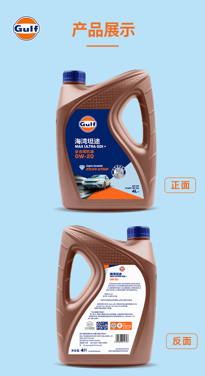 Gulf海湾坦途 全合成机油 ILSAC GF-6A 4L发动机润滑油