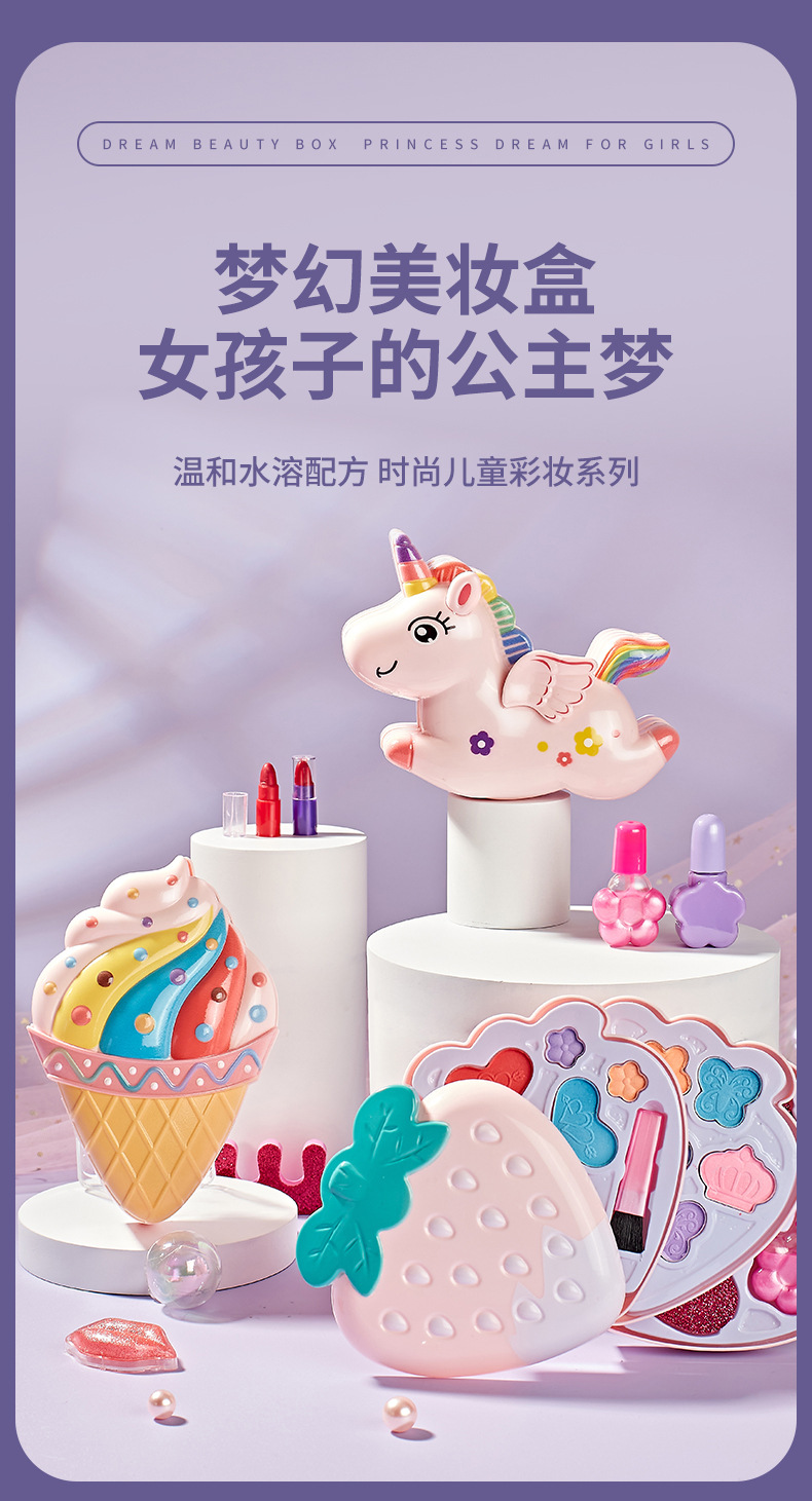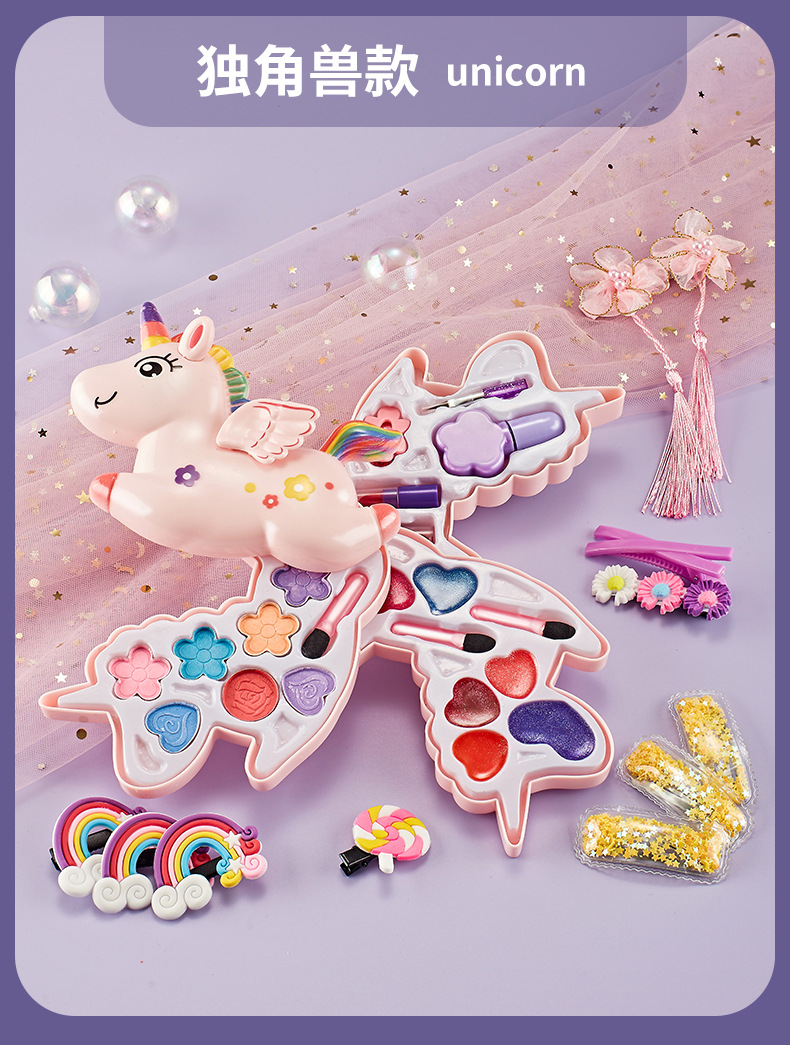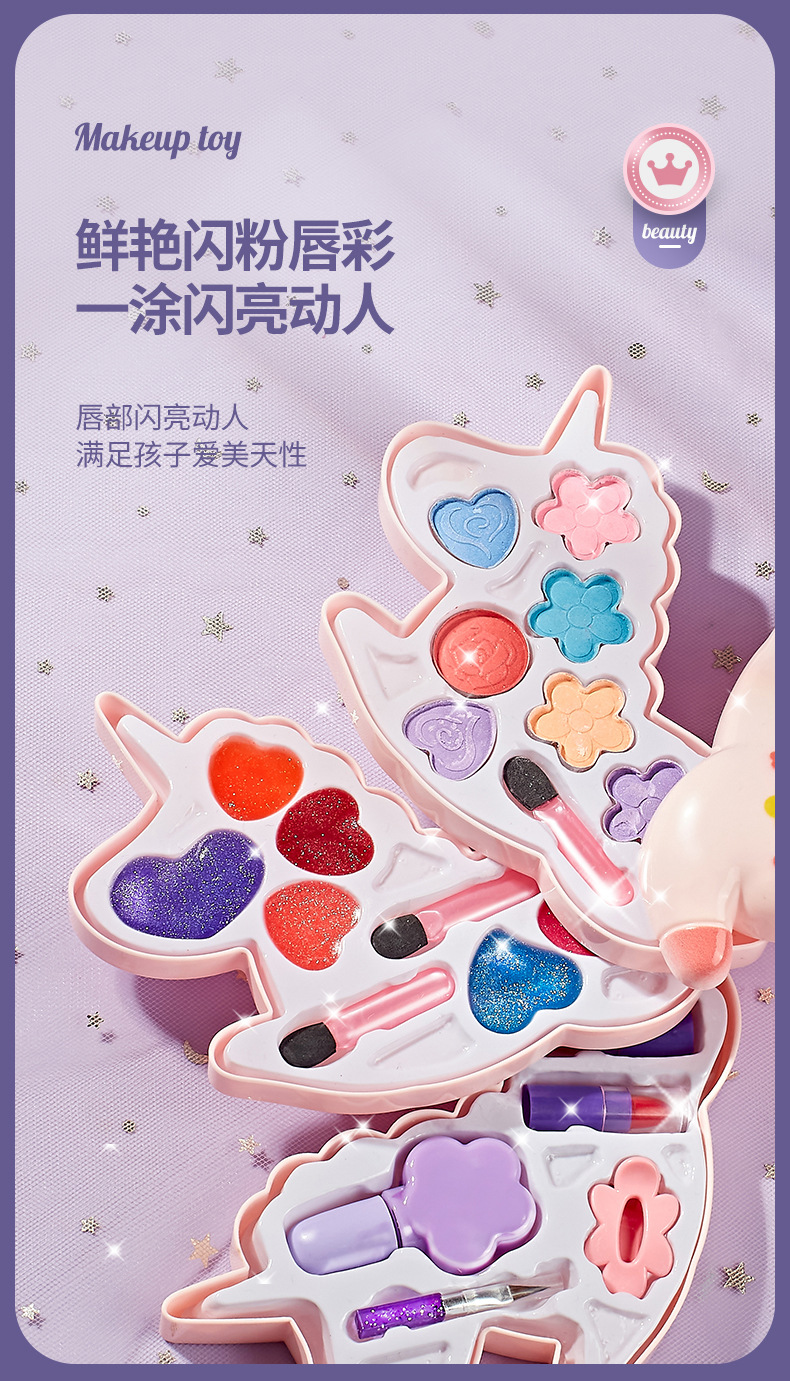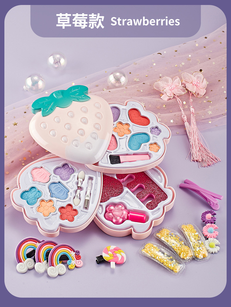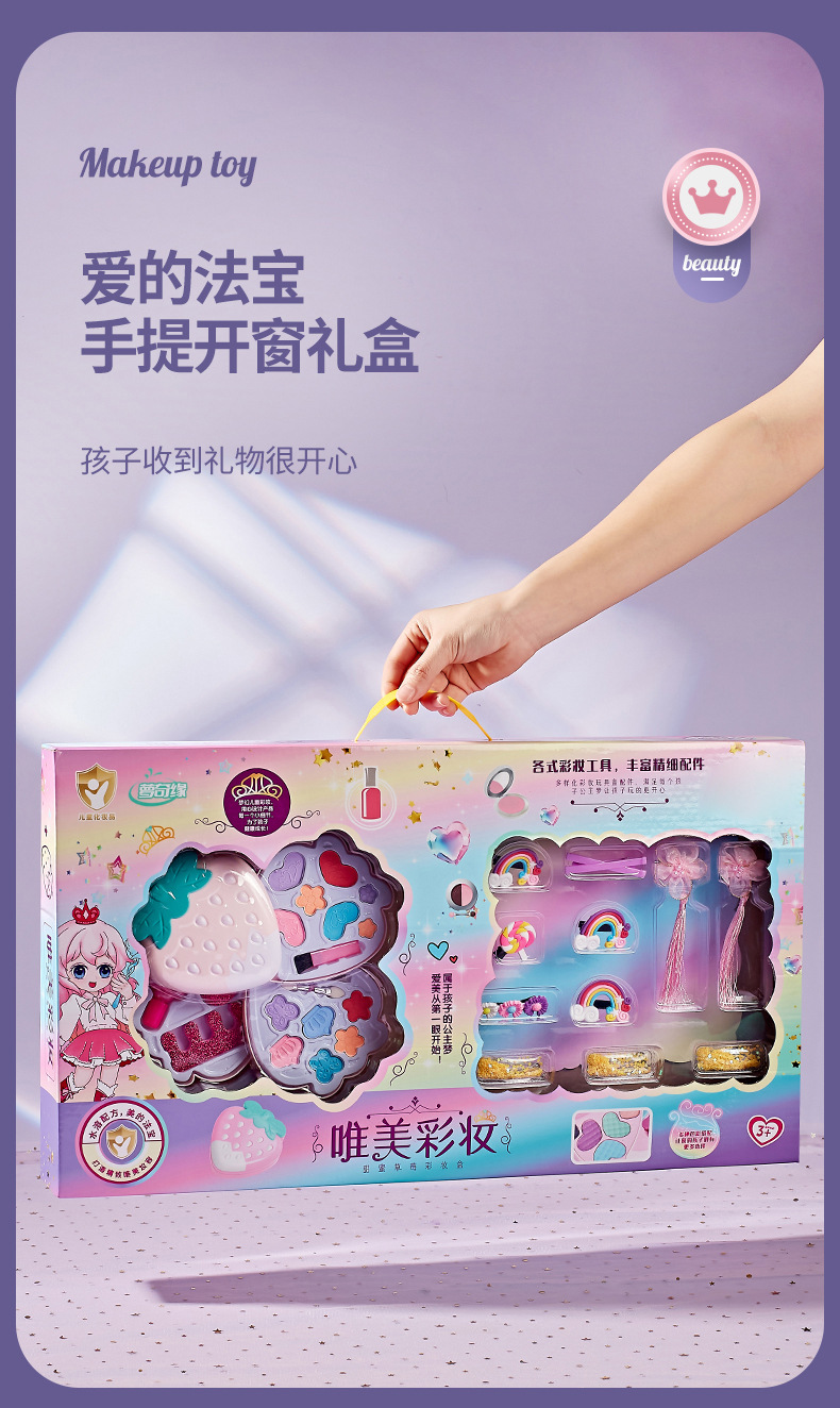【手提礼盒❗梦幻儿童美妆盒】女孩子的公主梦,温和水溶配方,一洗就掉呵护肌肤,开合设计收放自如,儿童化妆品彩妆发夹饰品公主生日礼物玩具QQ