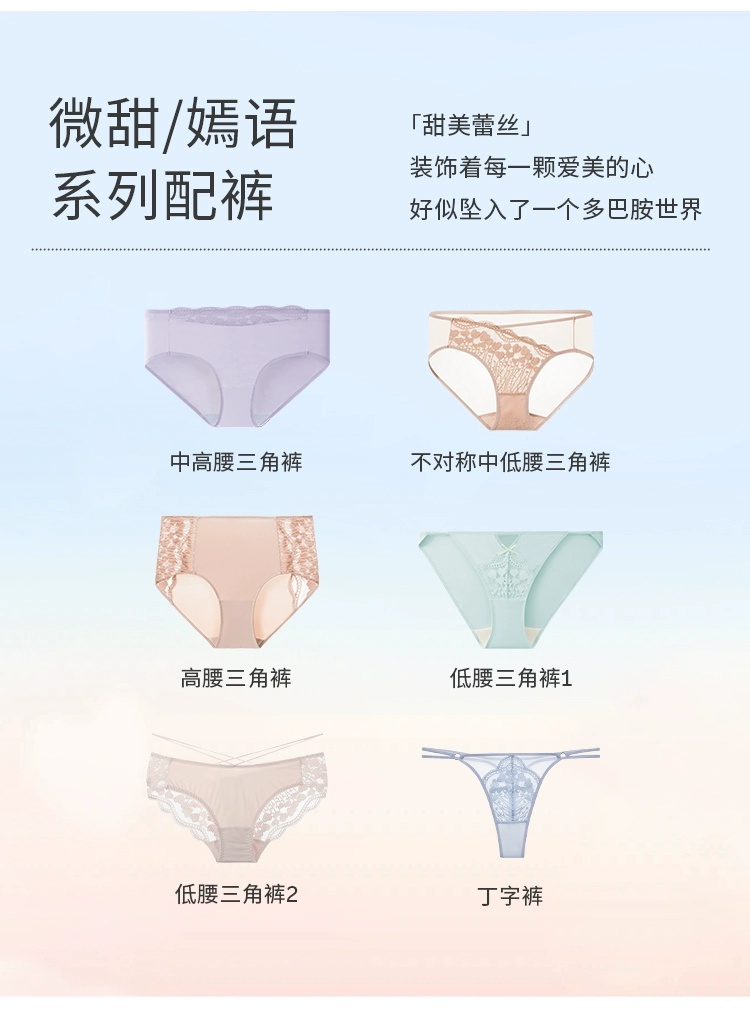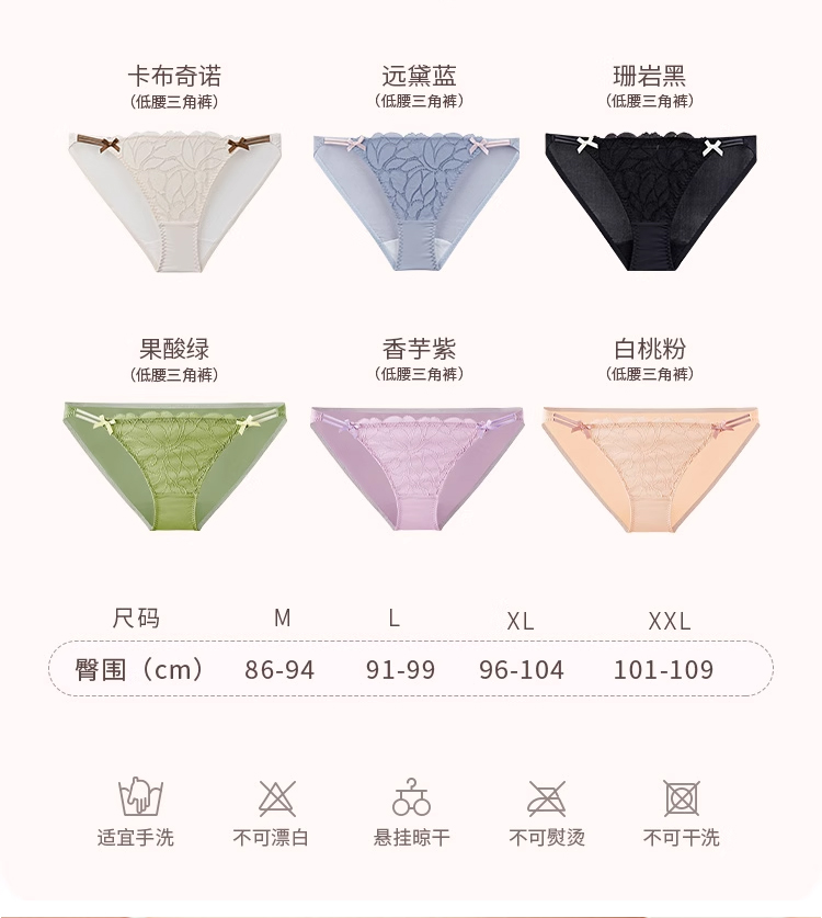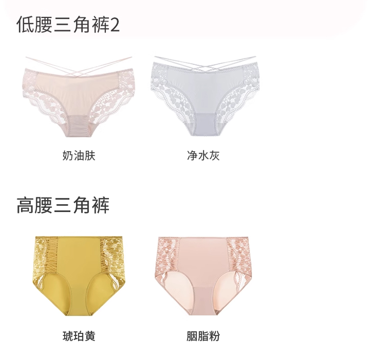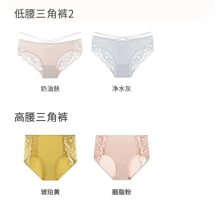 【精选蕾丝内裤4条组合装】奶糖派性感透气纯棉里裆三角裤女士可自选