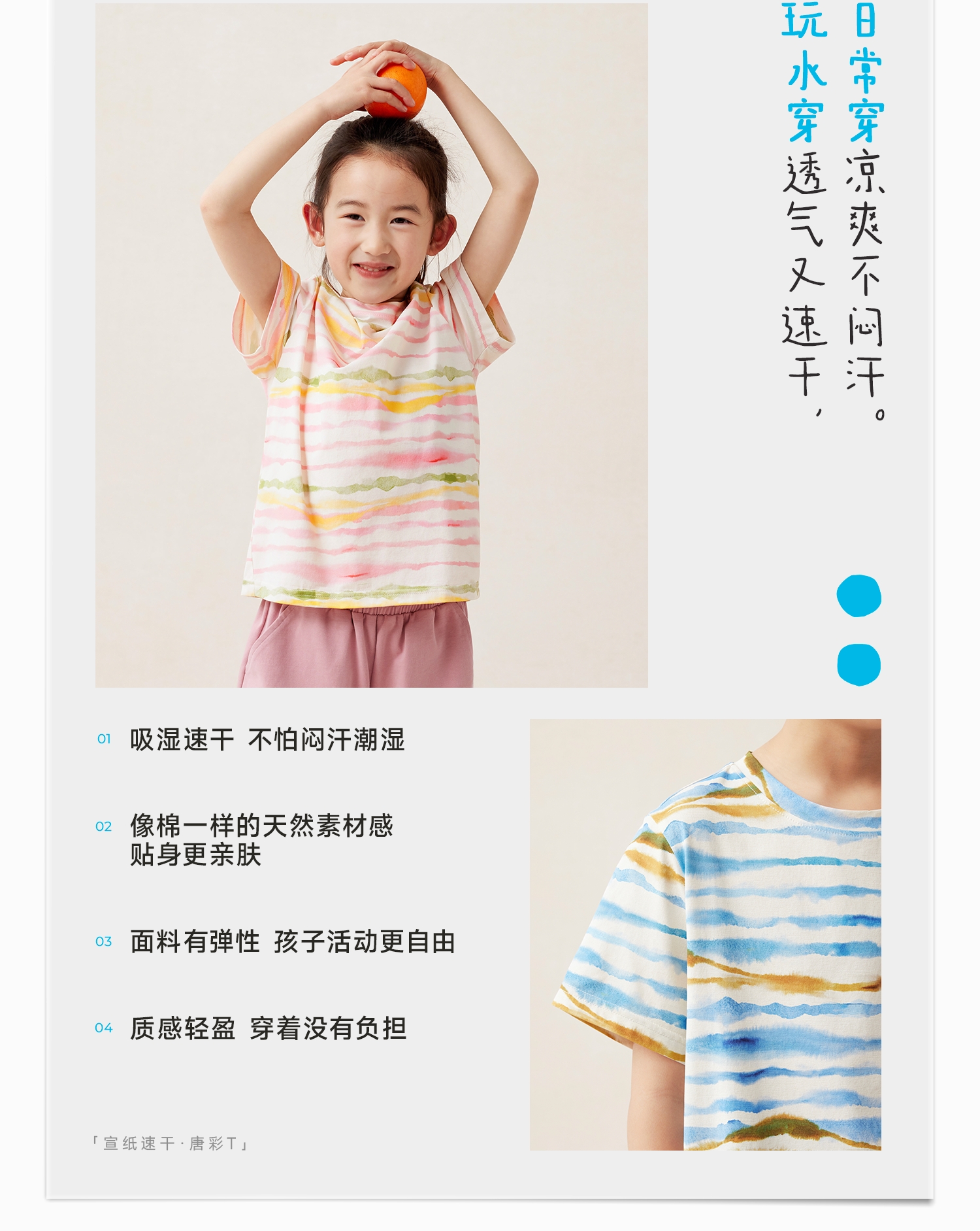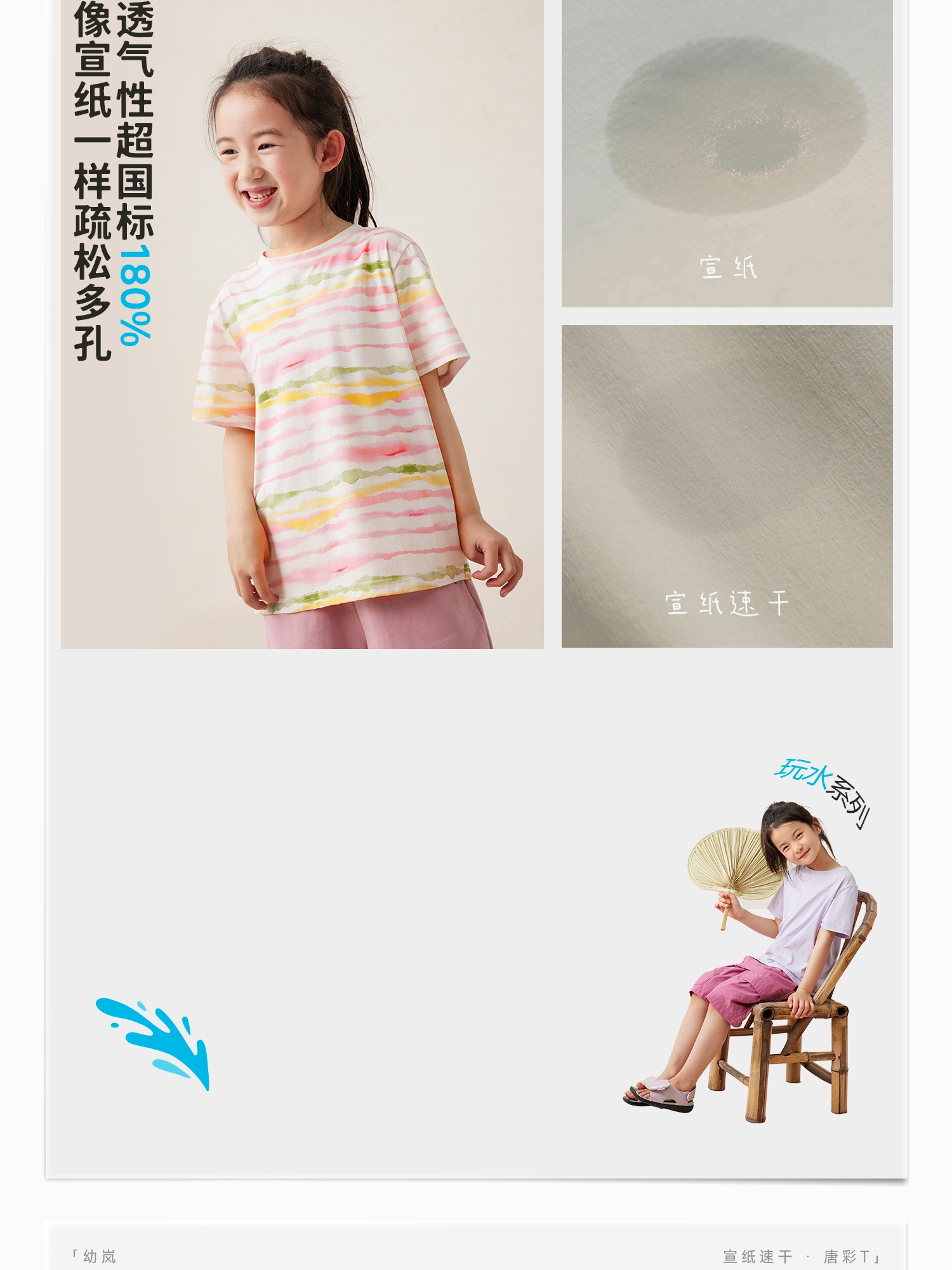 【好友特惠-玩水系列】幼岚「宣纸速干」唐彩T亲肤透气24夏新款儿童短袖T恤ZY