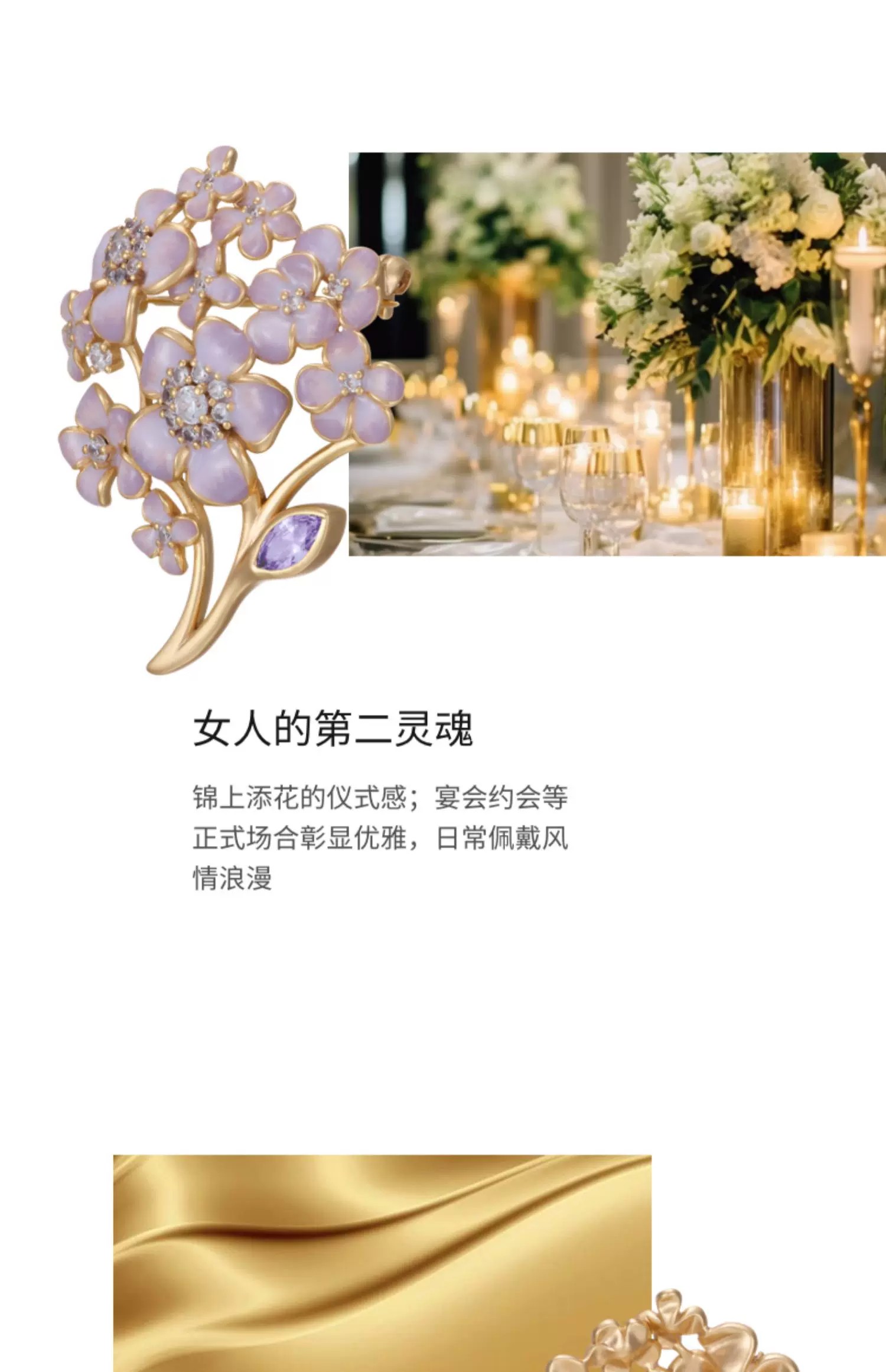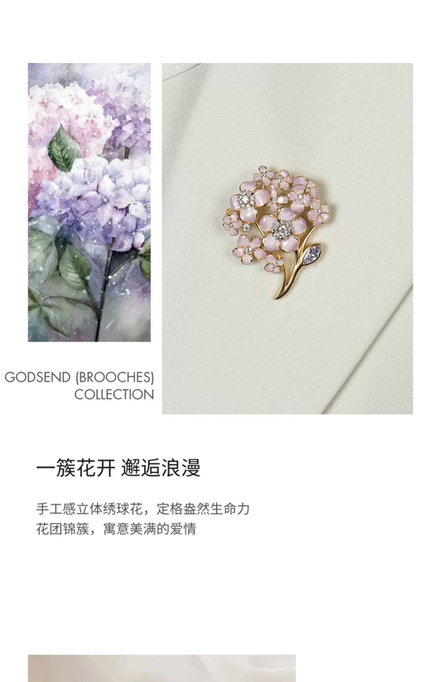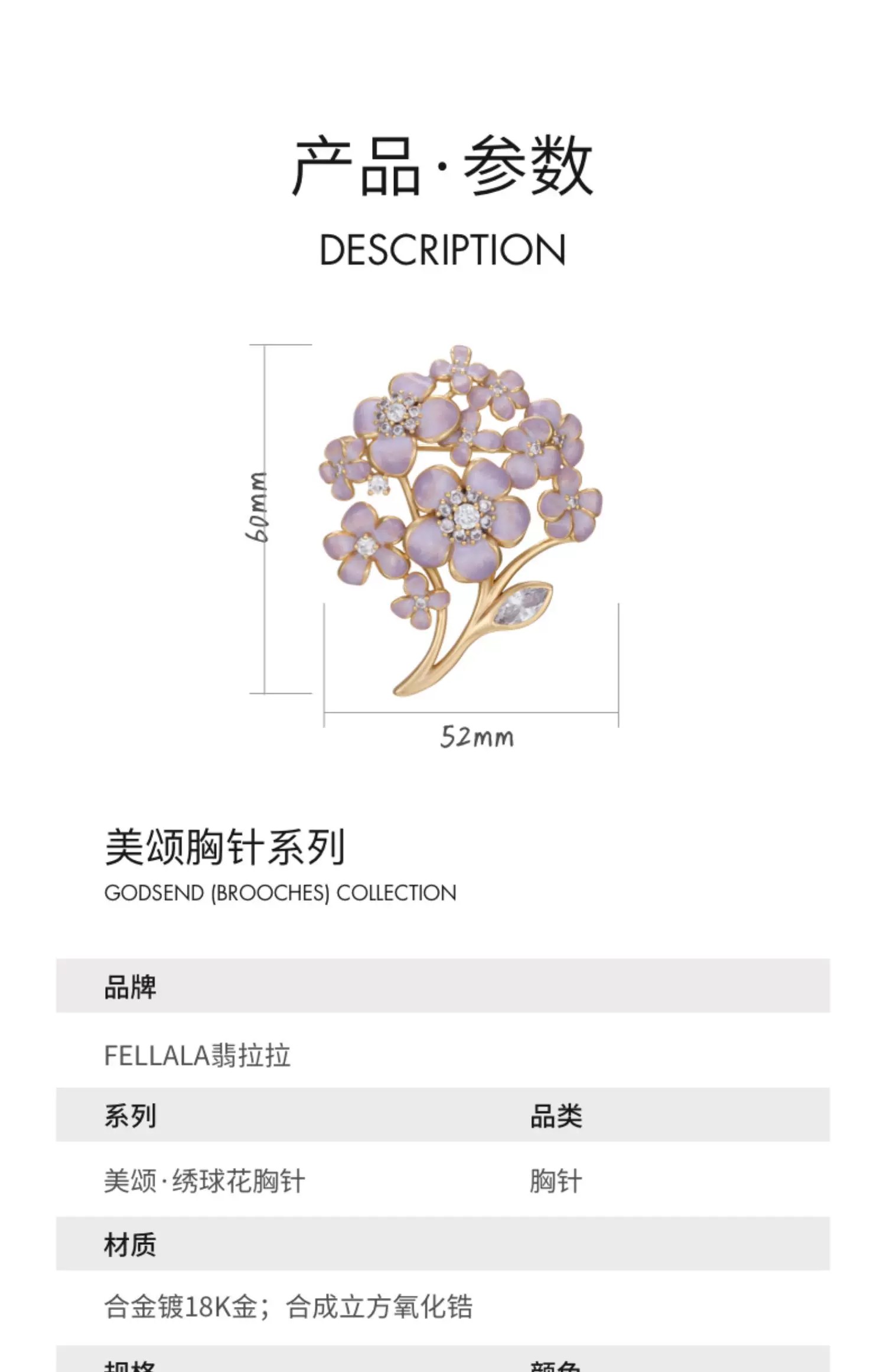 2楼Fellala/翡拉拉「美颂」系列原创优雅绣球花胸针货号924395510吊牌价999现价899