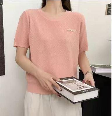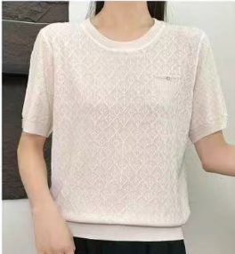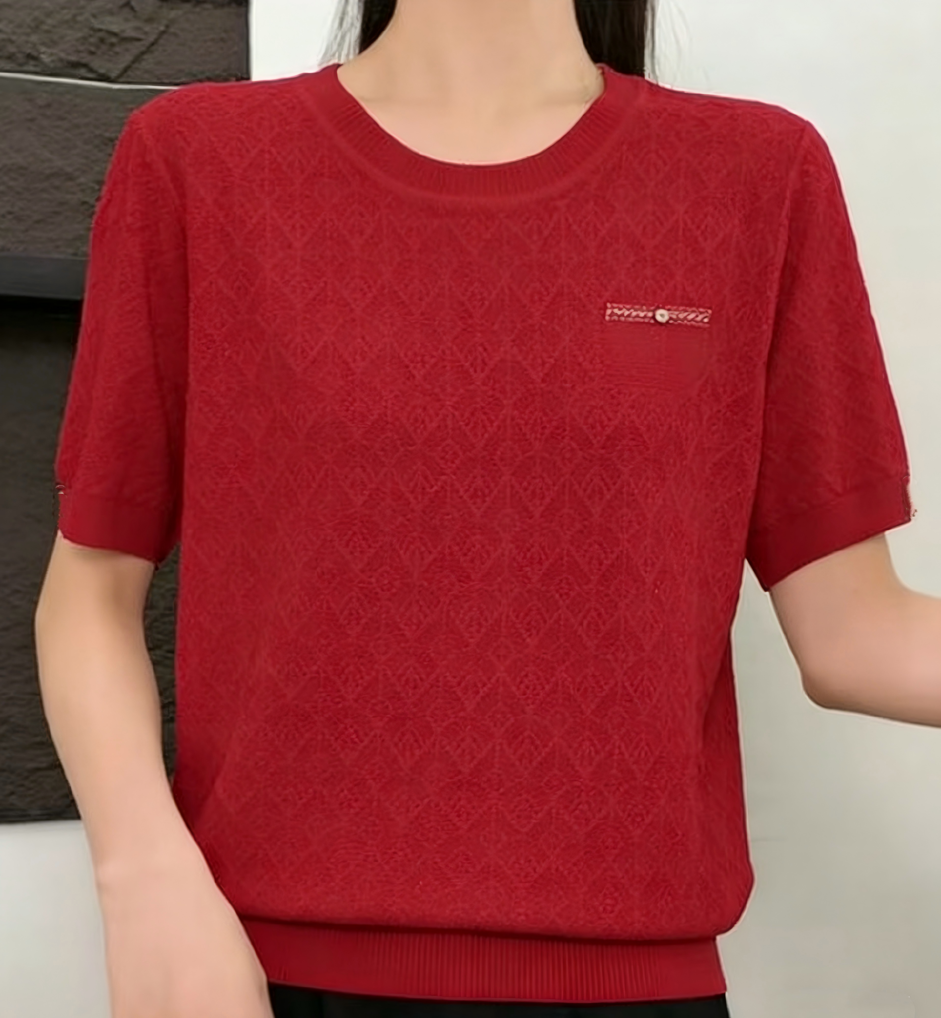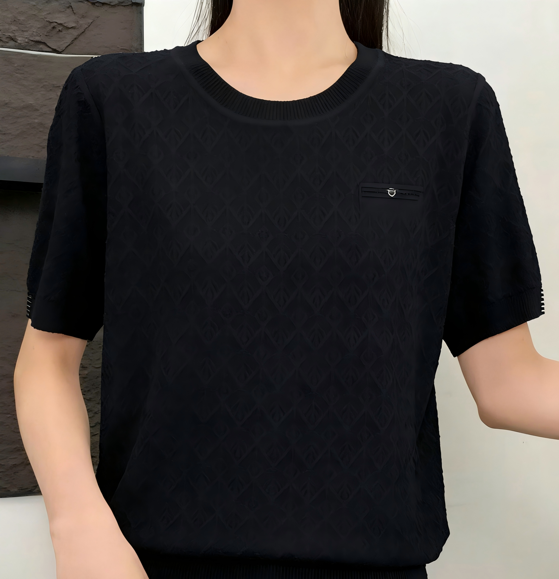 伯妮斯茵 | 简约气质 圆领短袖针织上衣 满幅菱形肌理 精致假口袋设计 透气舒适 SC2E06针织衫柔软亲肤百搭显瘦