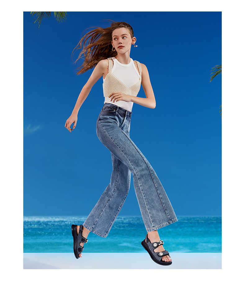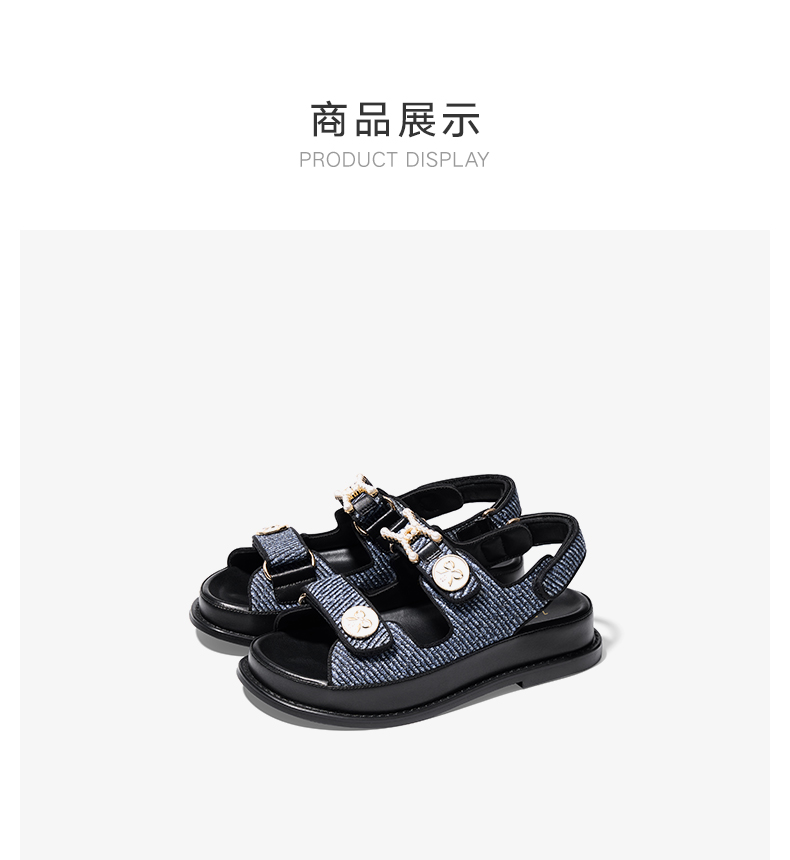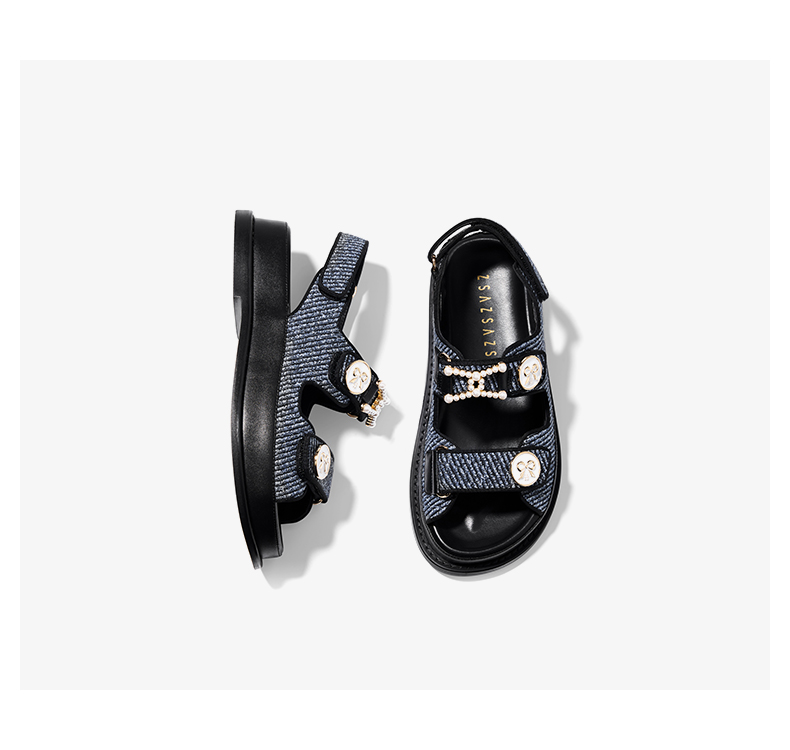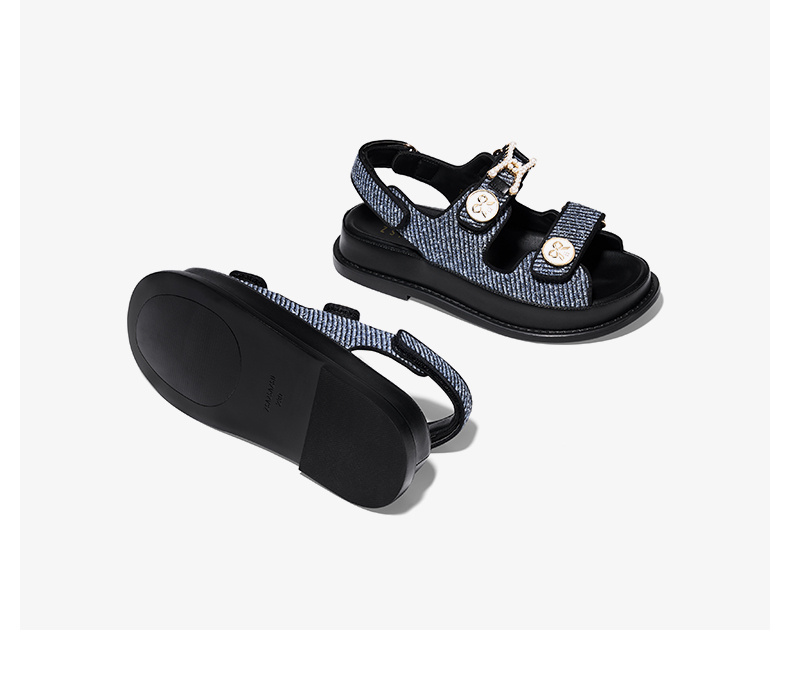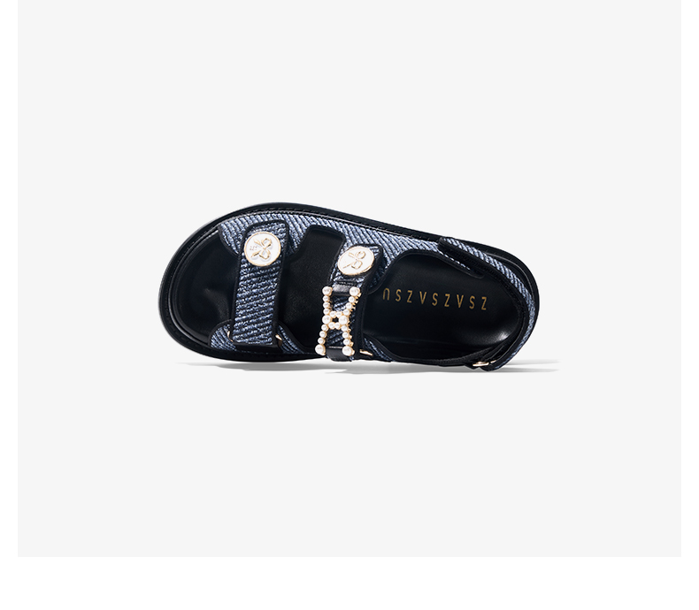 【2F】[锁链结]莎莎苏2023夏季魔术贴沙滩凉鞋外穿珍珠小香风运动凉鞋女