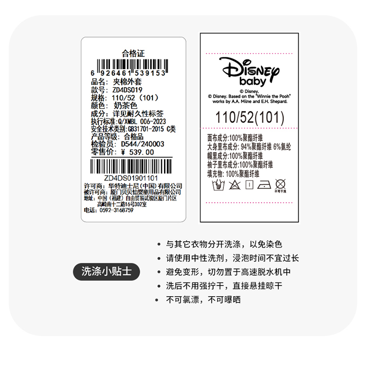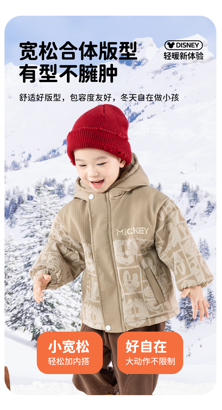 迪士尼男童夹棉外套棉服连帽外套ZD4DS019