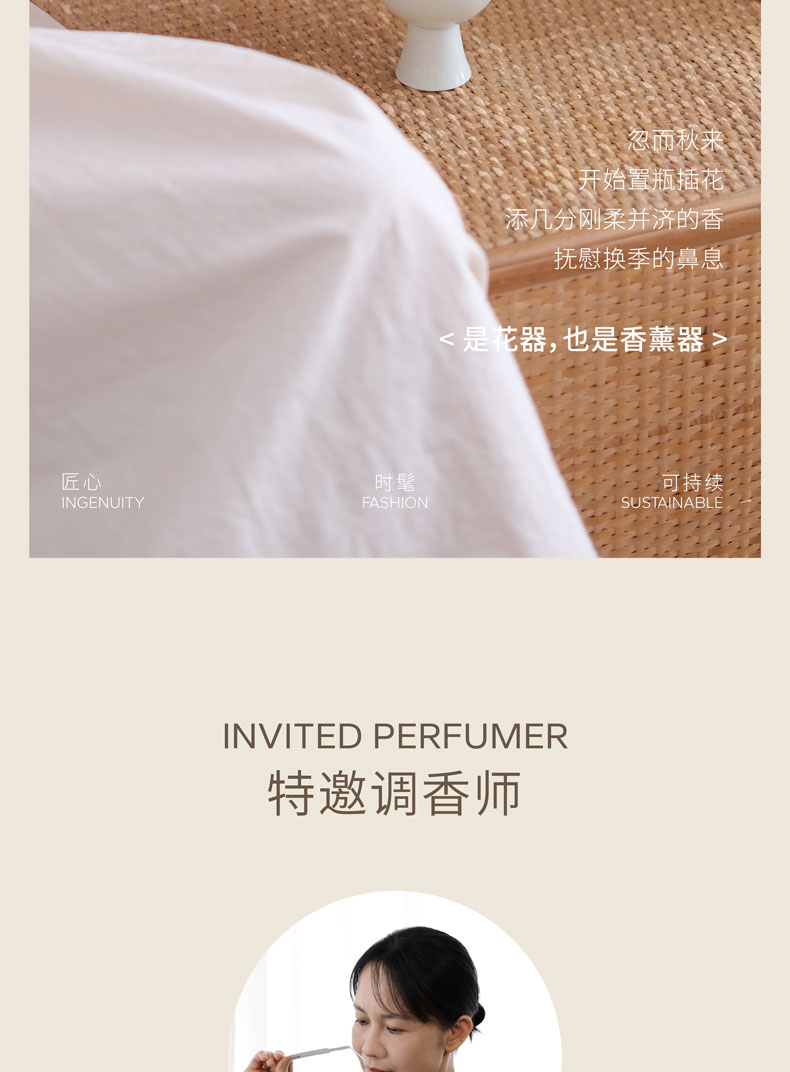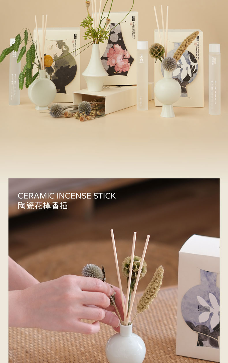 呈白 陶瓷花樽香插香薰礼盒【赠送天然干花材料包】大师调香 0酒精 人宠友好香 每个月都能闻见不一样的香