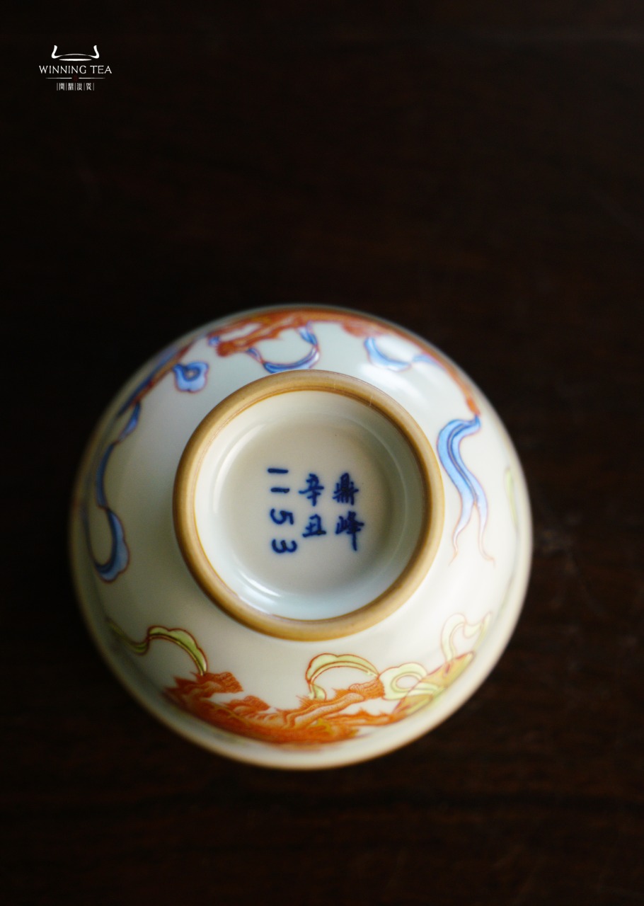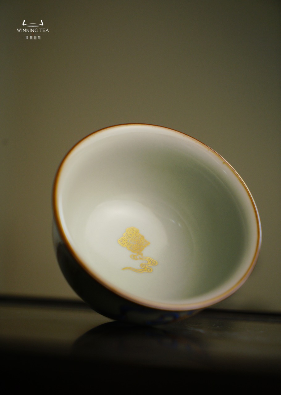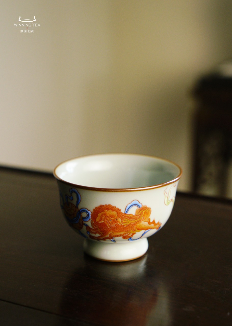 问鼎汝瓷鼎峰柴窑天青天河杯(梵红描金绘画狮子绣球)( 缺货 )