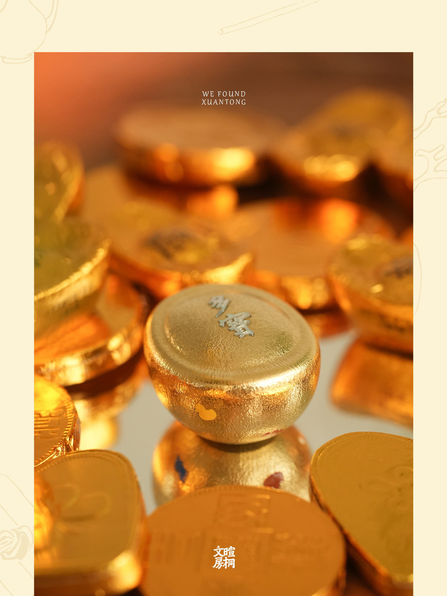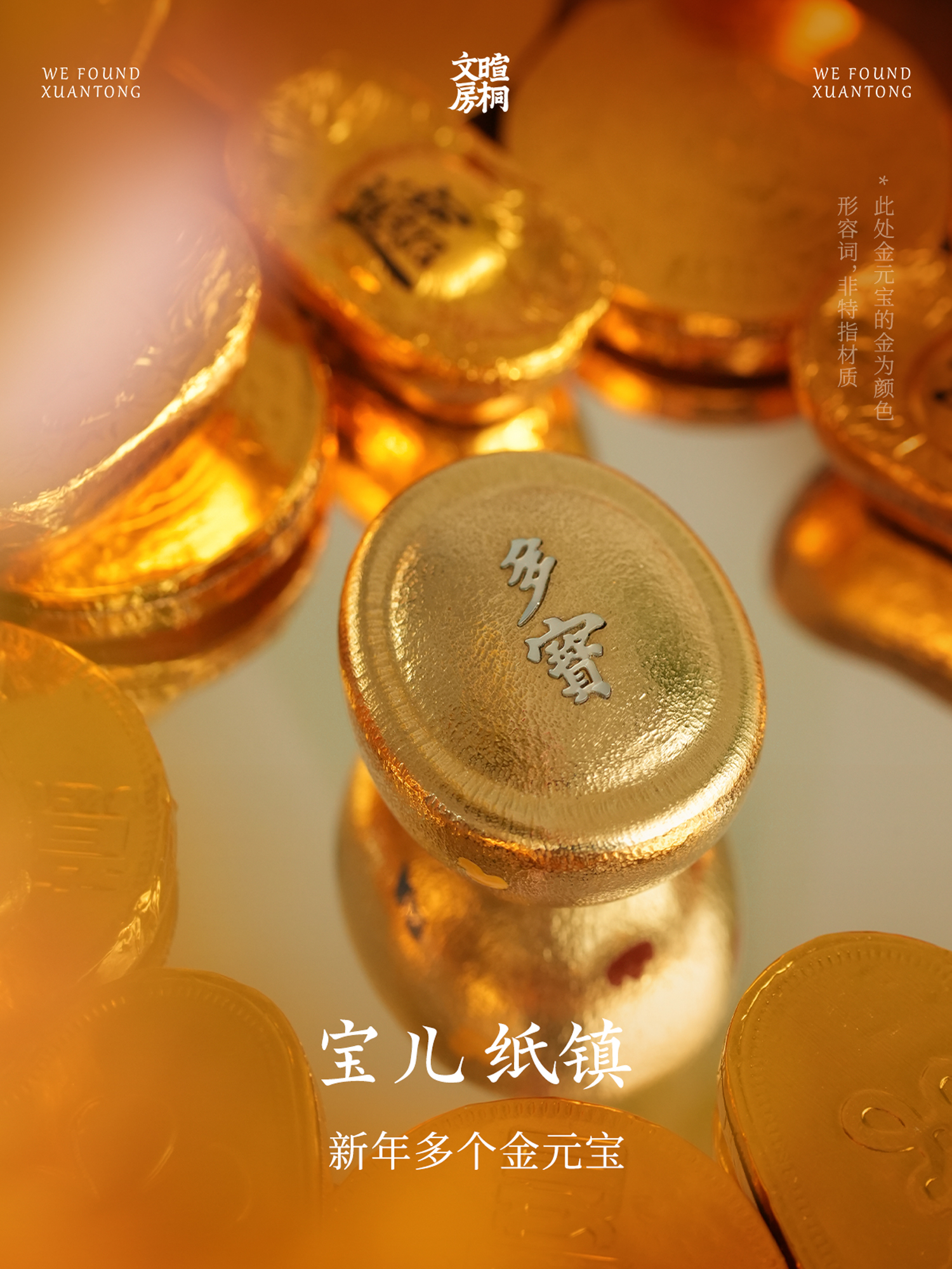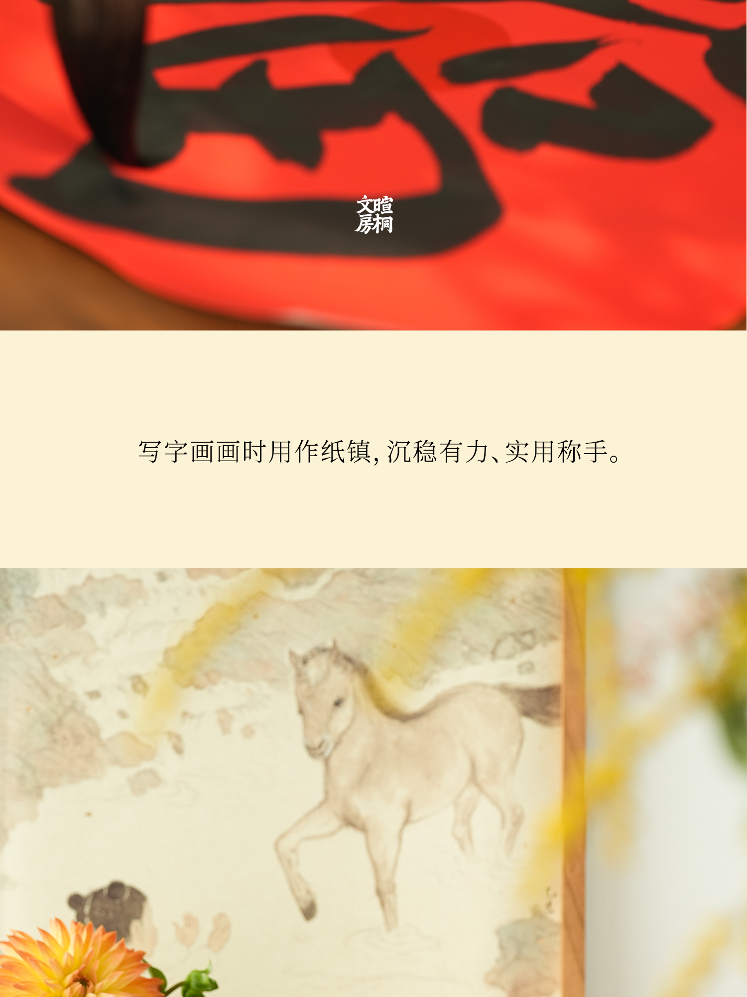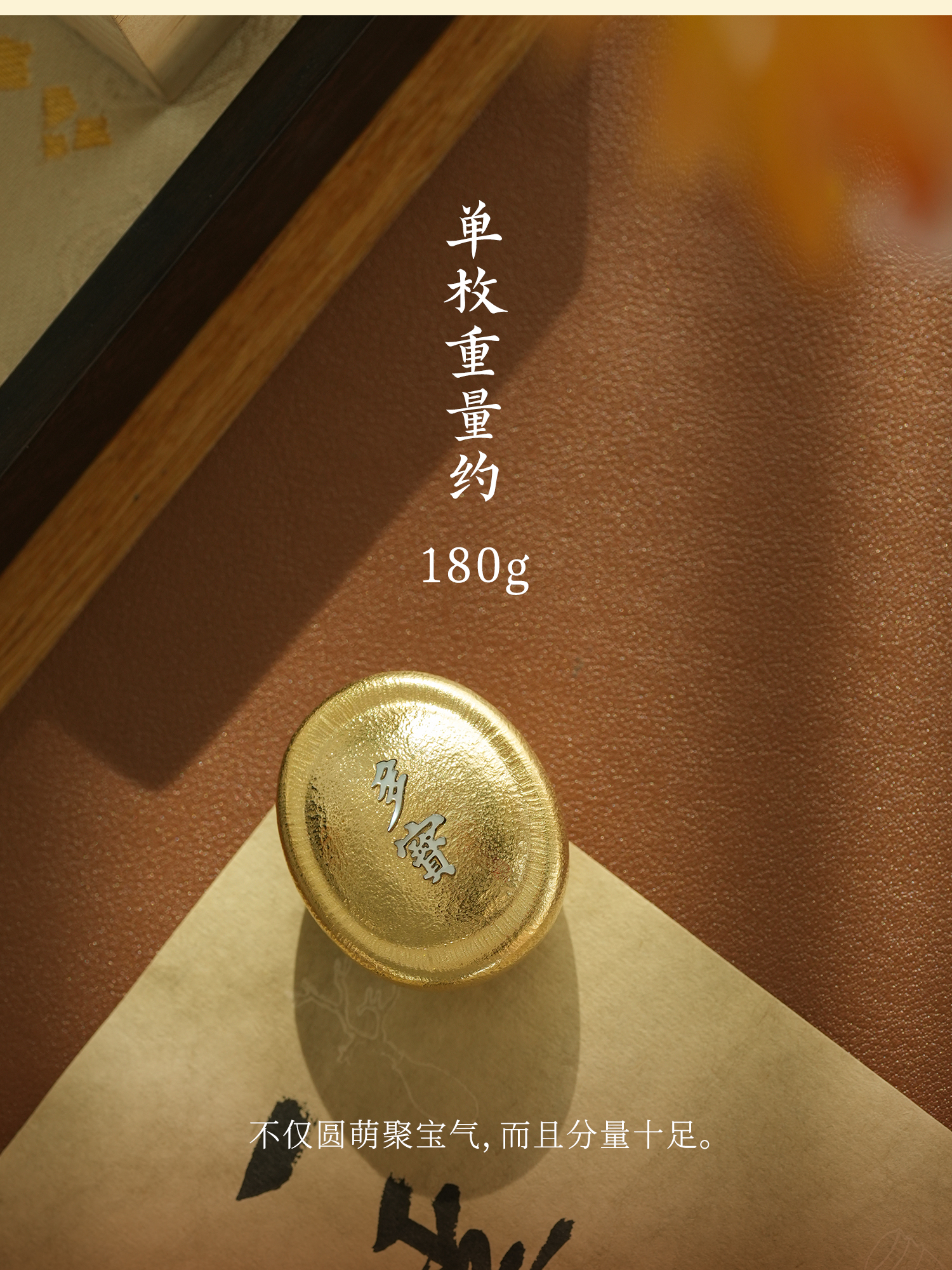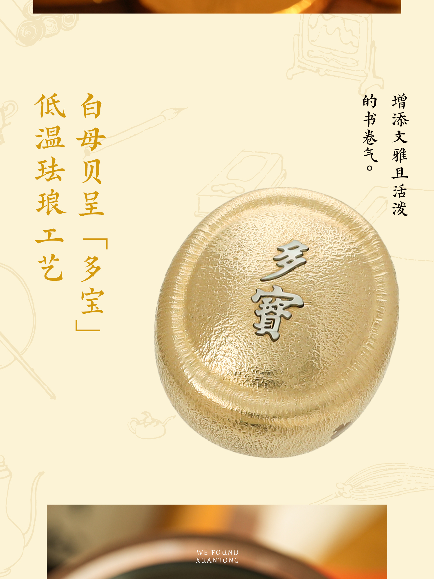 暄桐文房 宝儿纸镇 黄铜 白母贝