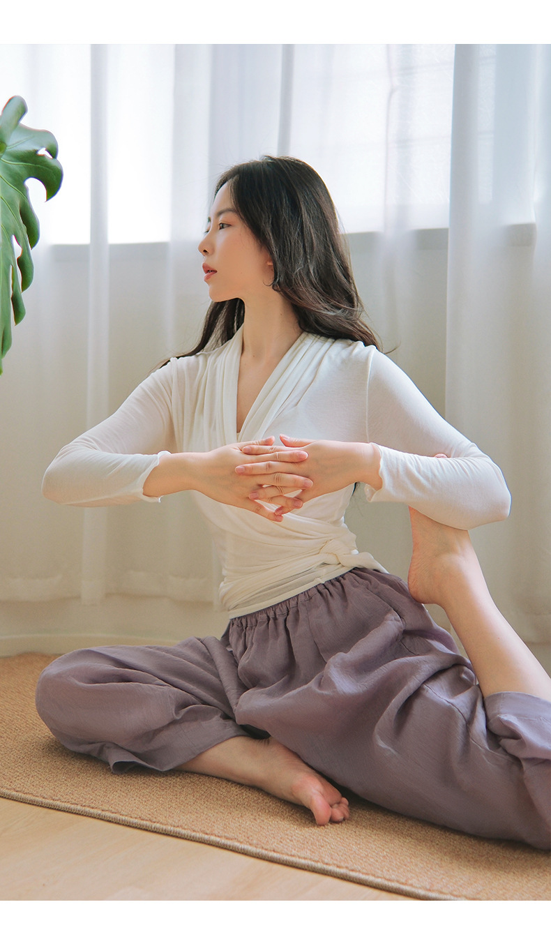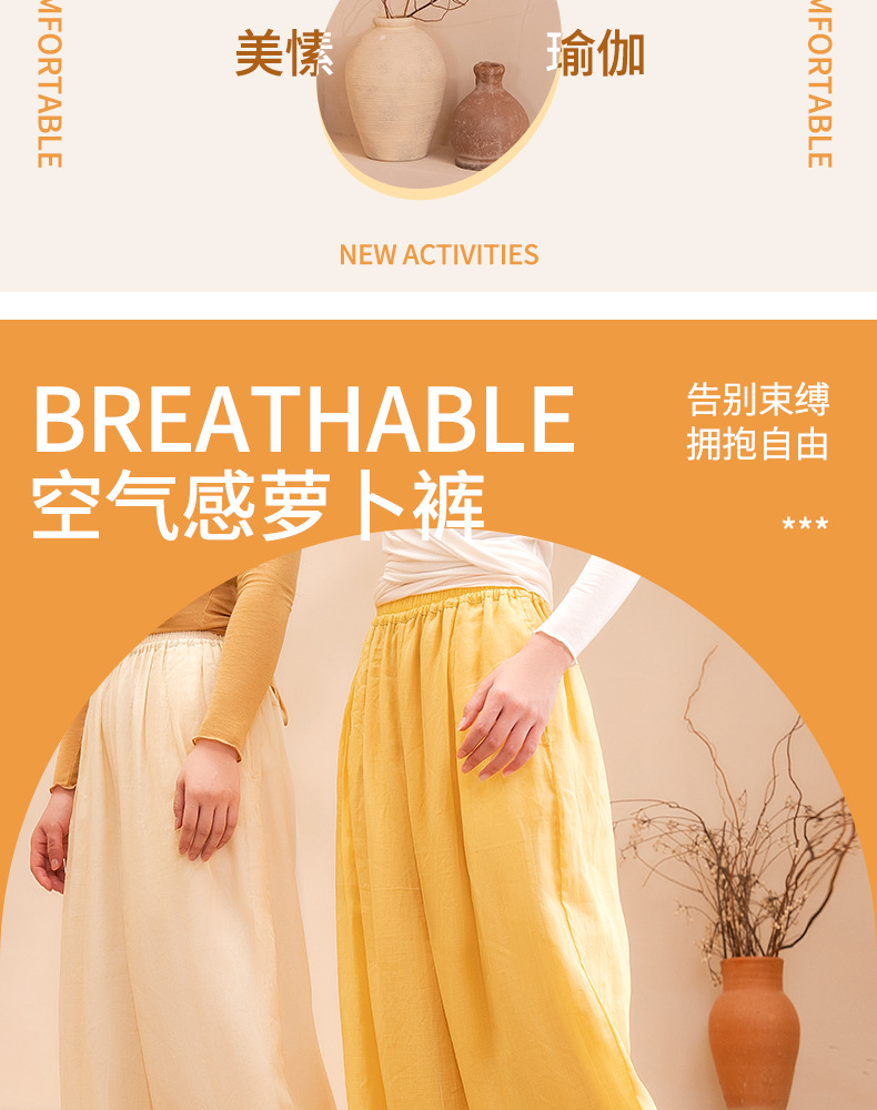 美愫古典舞蹈服女夏季轻薄苎麻瑜伽裤形体宽松运动健身灯笼裤长裤 商品图4