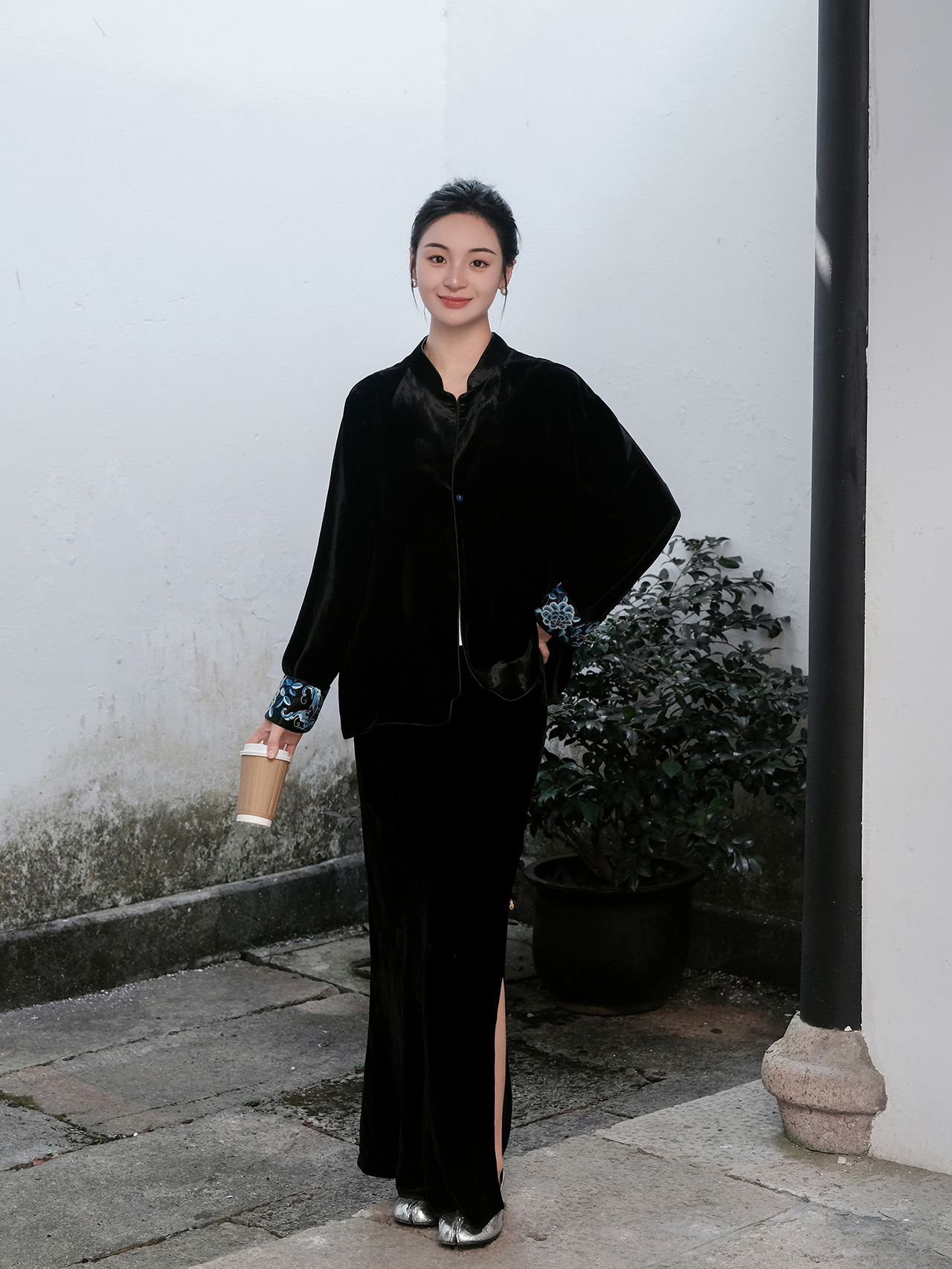 盛唐婧 |新中式丝绒鱼尾半裙-黑色