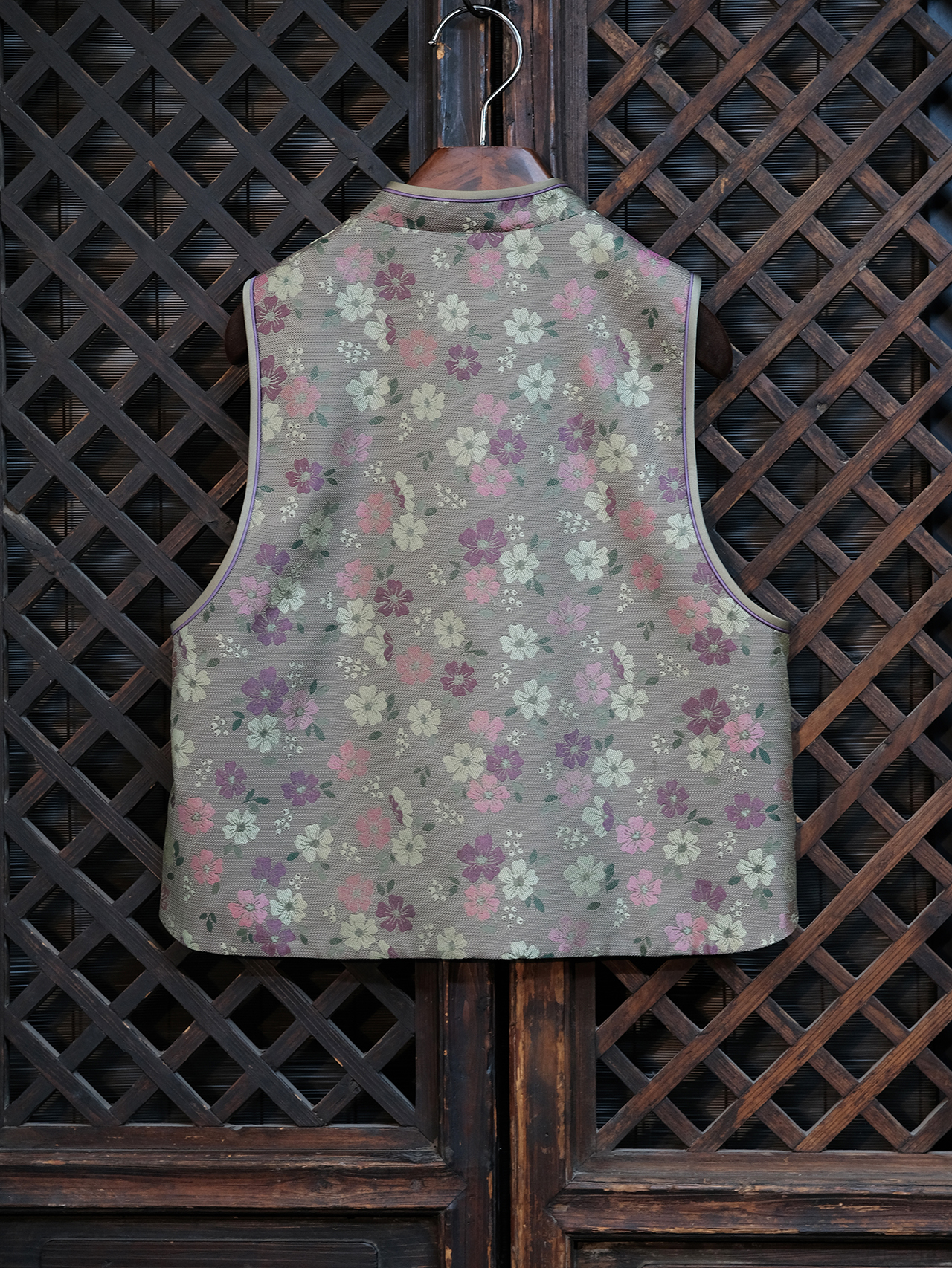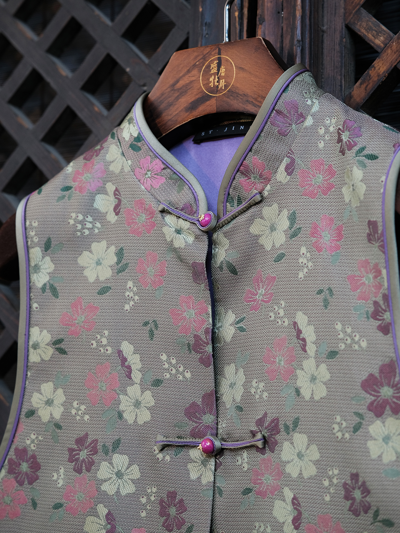 盛唐婧 |真丝宋锦梅花纹对襟马甲