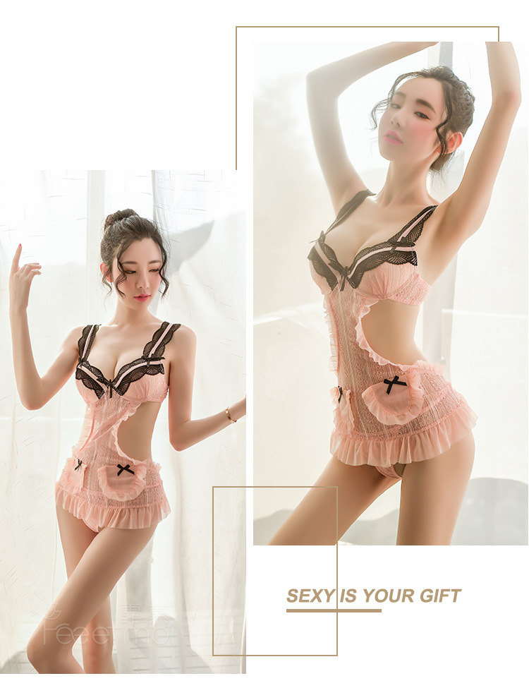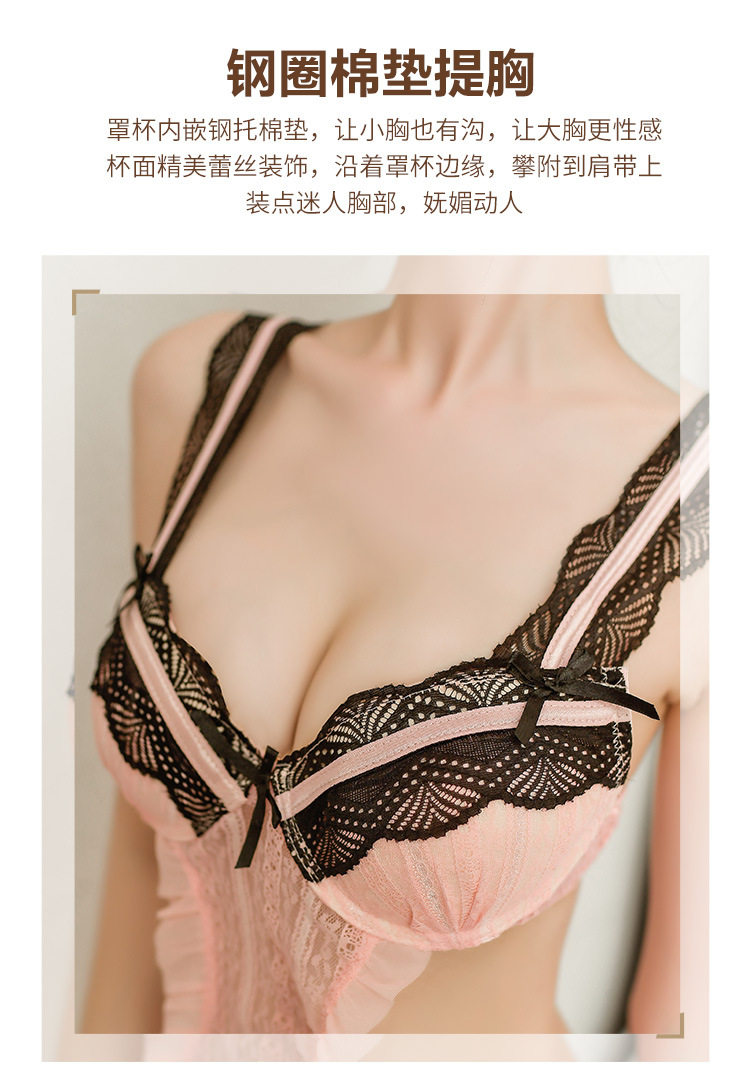 霏慕情趣内衣性感蕾丝钢托棉垫围裙式女佣女仆制服睡裙