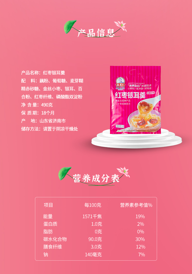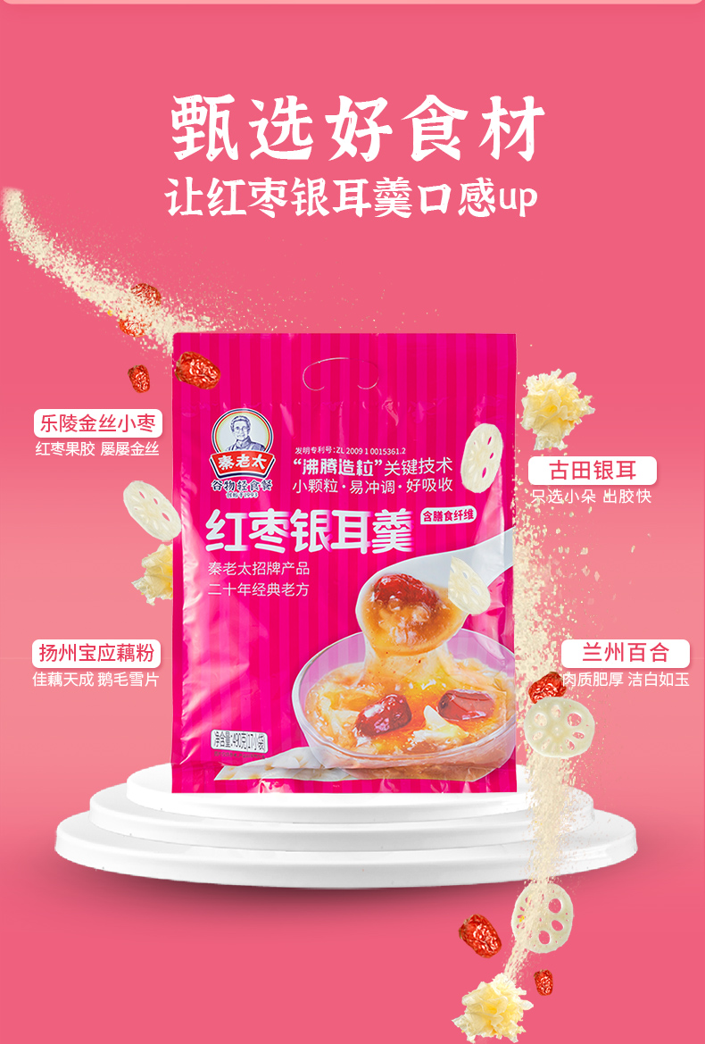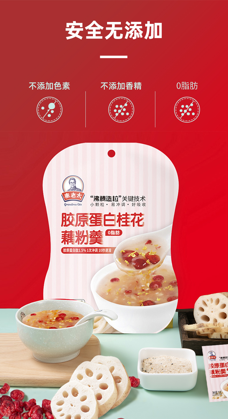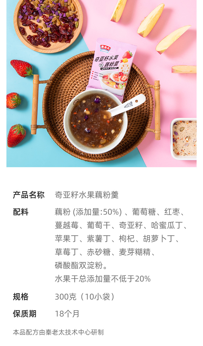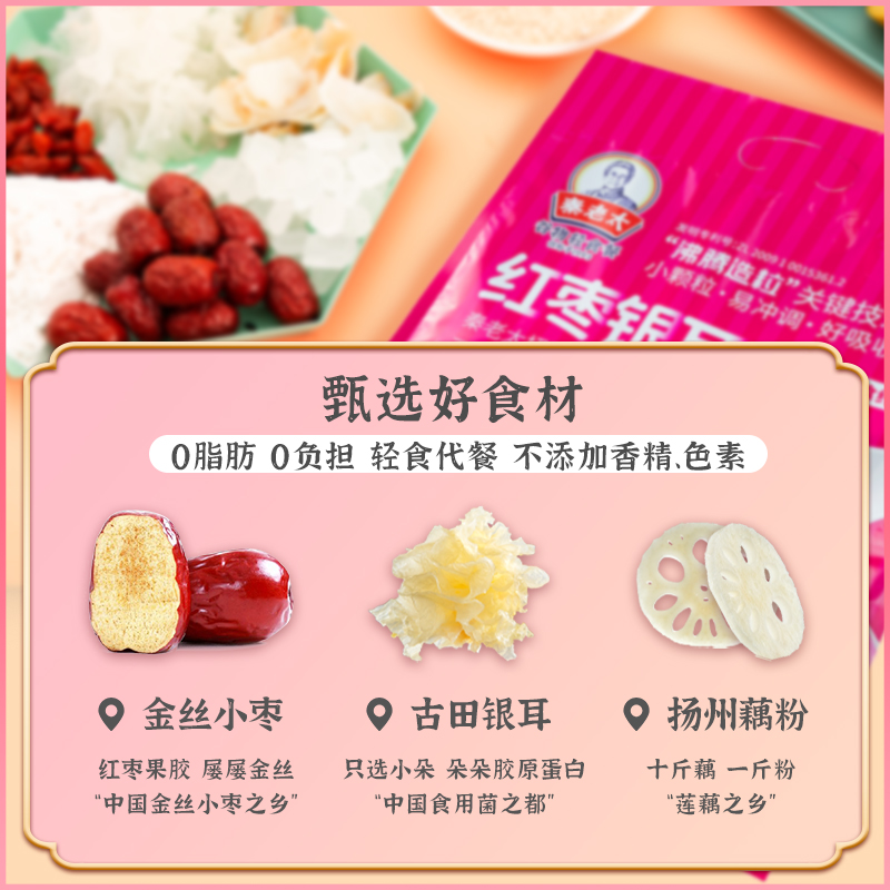 秦老太 冲泡即食红枣银耳莲子奇亚籽藕粉羹低蛋白食品490g有效期至10月