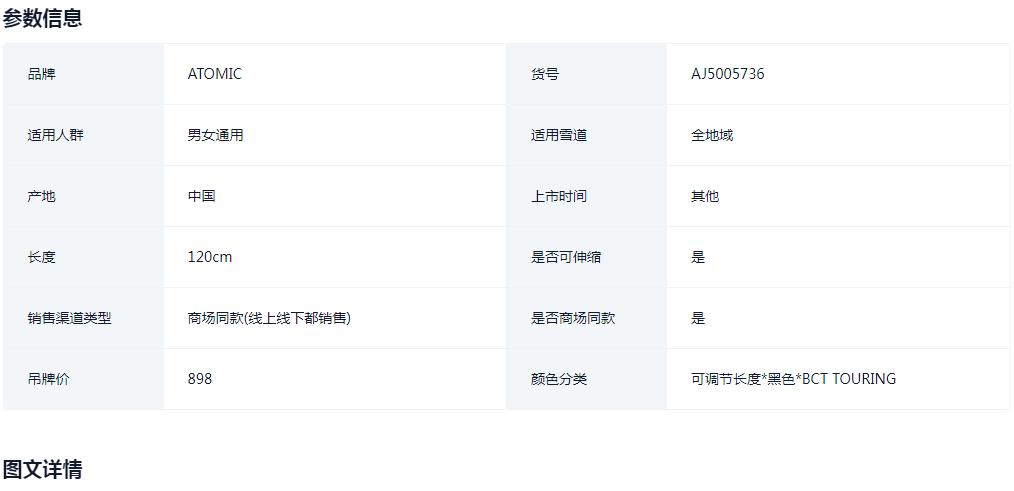 【七折特卖】ATOMIC阿托米克可调节滑雪杖雪竿雪地装备雪杆BCT TOURING AJ5005736