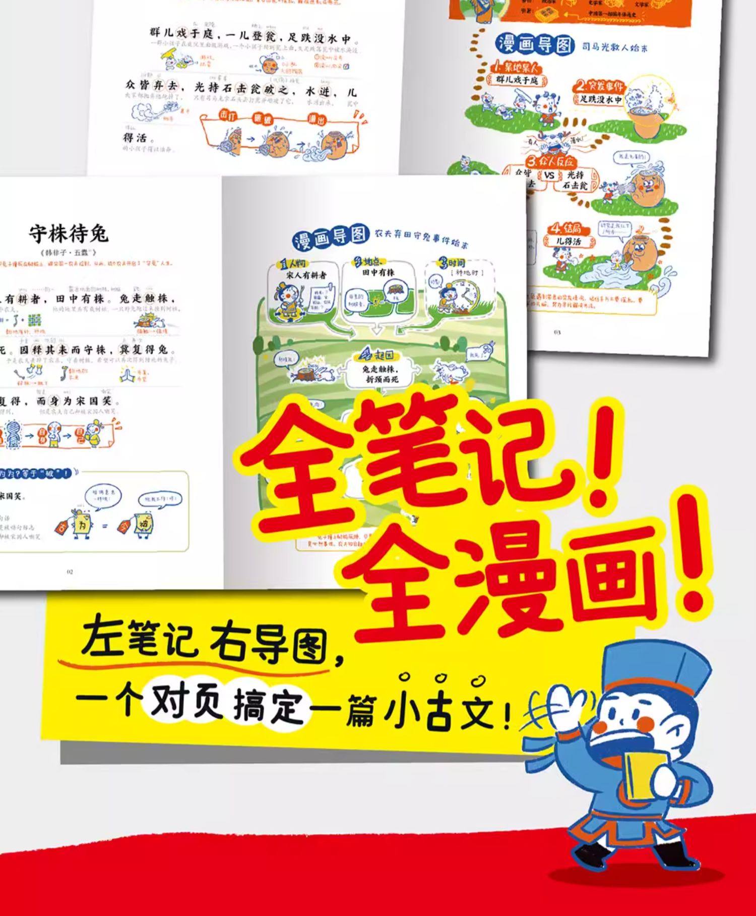 开心童书】小学生小古文漫画笔记 JST手把手教你看懂文言文古诗文小古文全解趣味漫画思维导图解析100篇文言文100课1200文言文词句