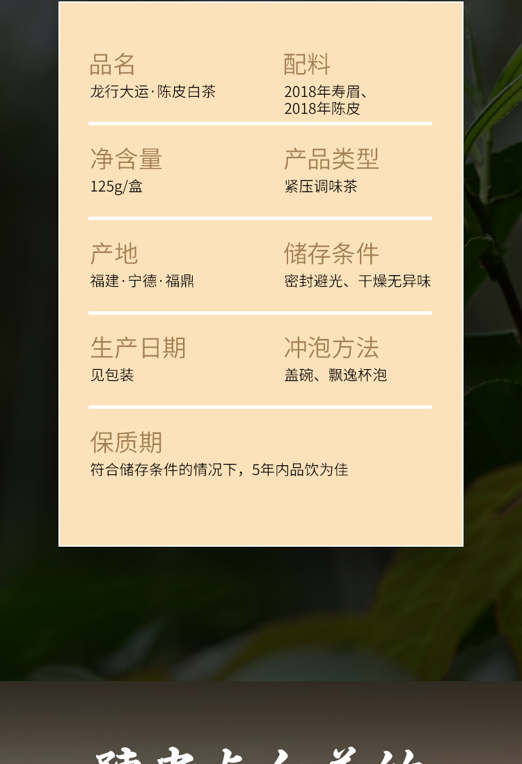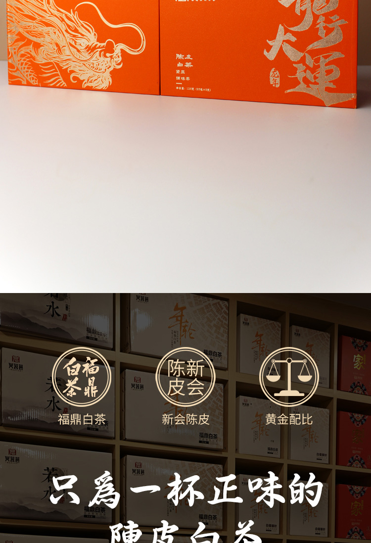 鼎茗荟丨龙行大运 陈皮白茶 2018年原料 125g(5g*25) 礼盒装配手提袋