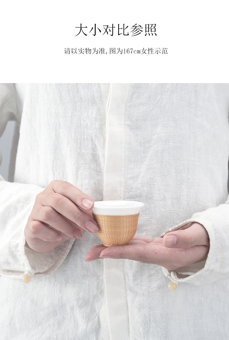 【老山翁】竹丝精编小杯竹编特色品茗杯 陶瓷茶艺公道杯分茶器茶具竹丝扣瓷