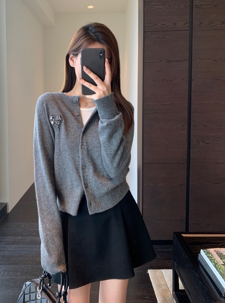 ✅衣长优化身材比例,显高显瘦!胸前不规则钉钻组成华丽爱心,纯手工缝制而成,精致又浪漫~