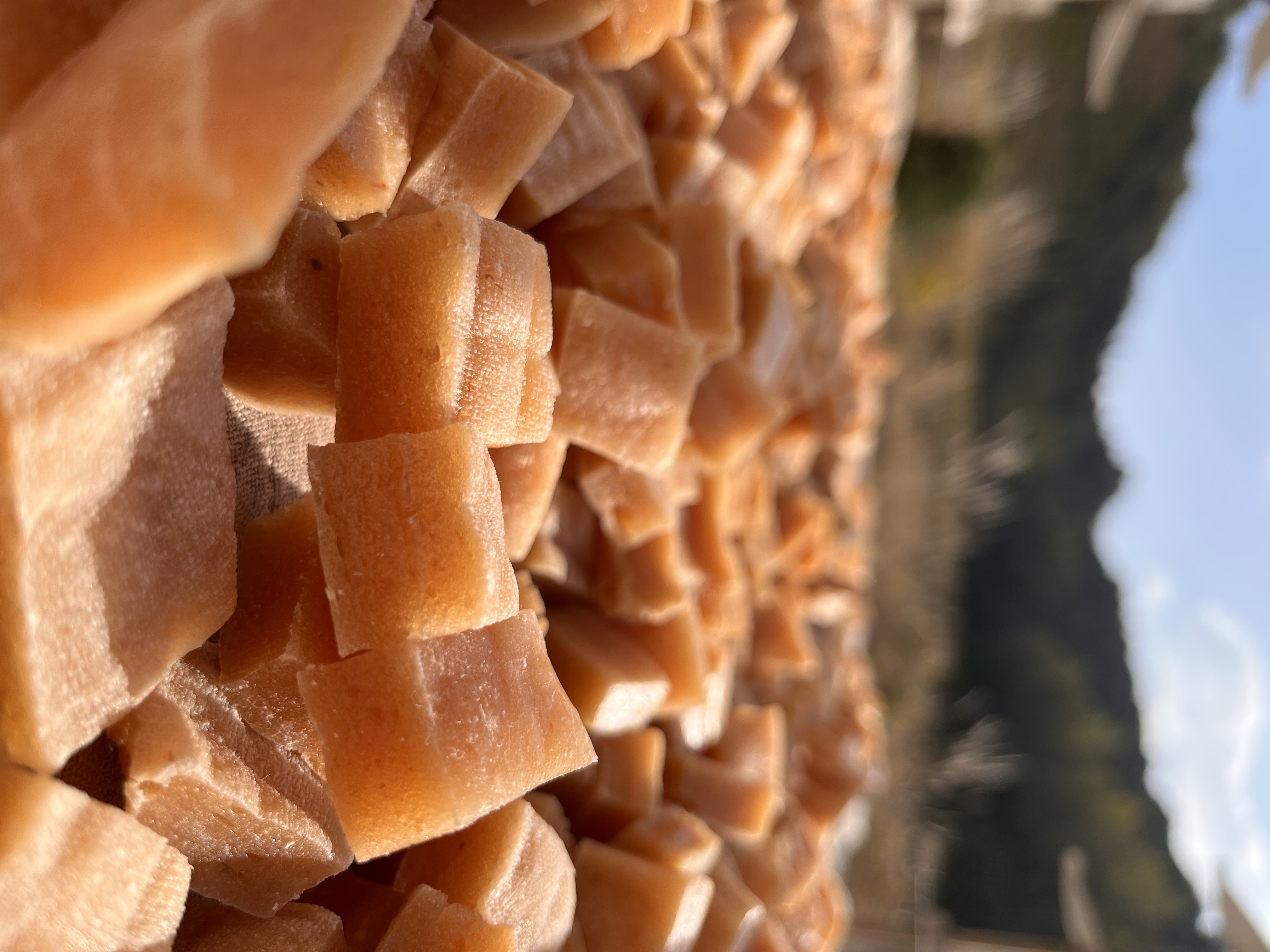 我们纯纯的酸枣糕的制作过程大多过程是手工制作,机器辅助,流程繁杂且费力,清洗酸枣-蒸煮-去皮-去核-加糖-拌匀-晒5-6天或低温烘干,酸枣果干的颜色由白变黄,这样酸枣糕才算做好了,吃一小块,酸酸甜甜,非常美味
