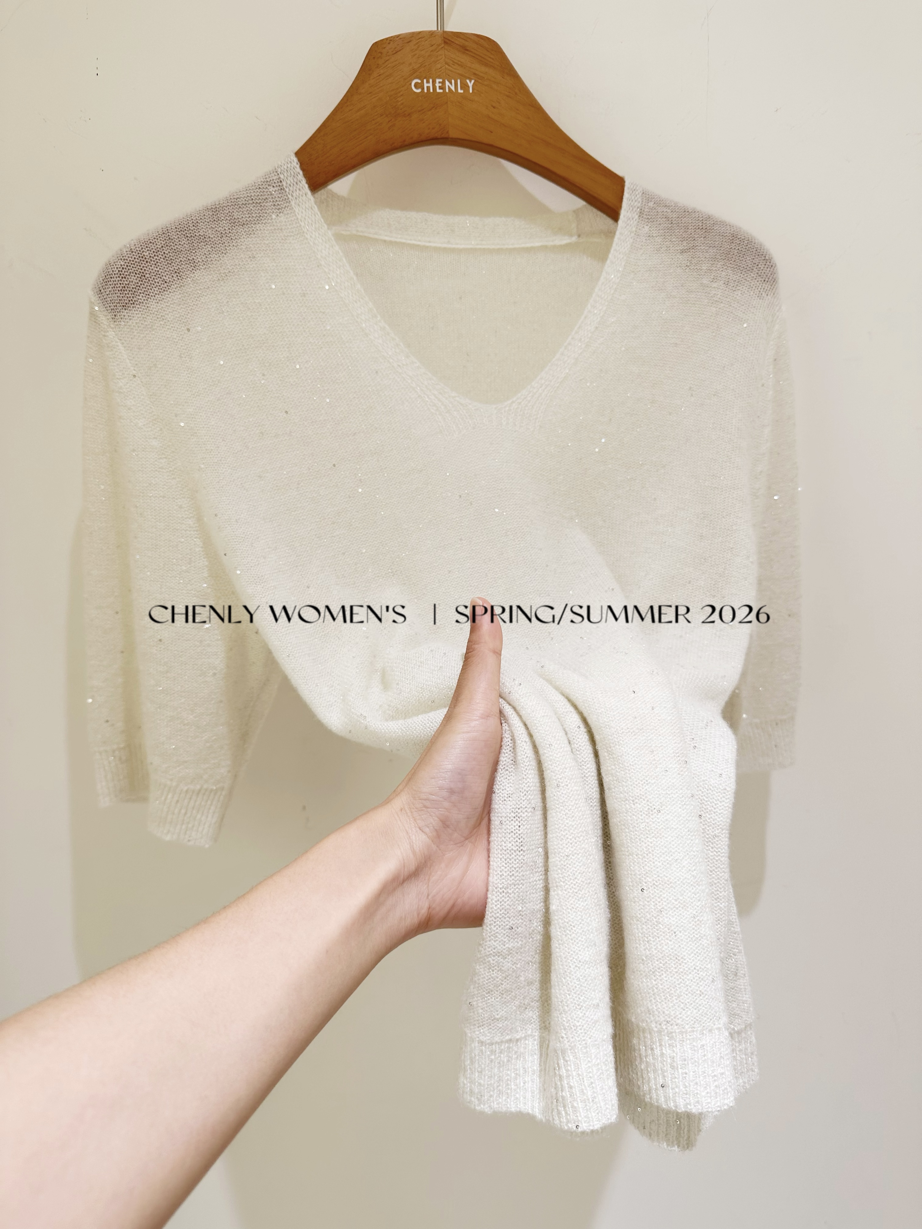 尘衣|26SS星空珠片羊毛羊绒短袖
