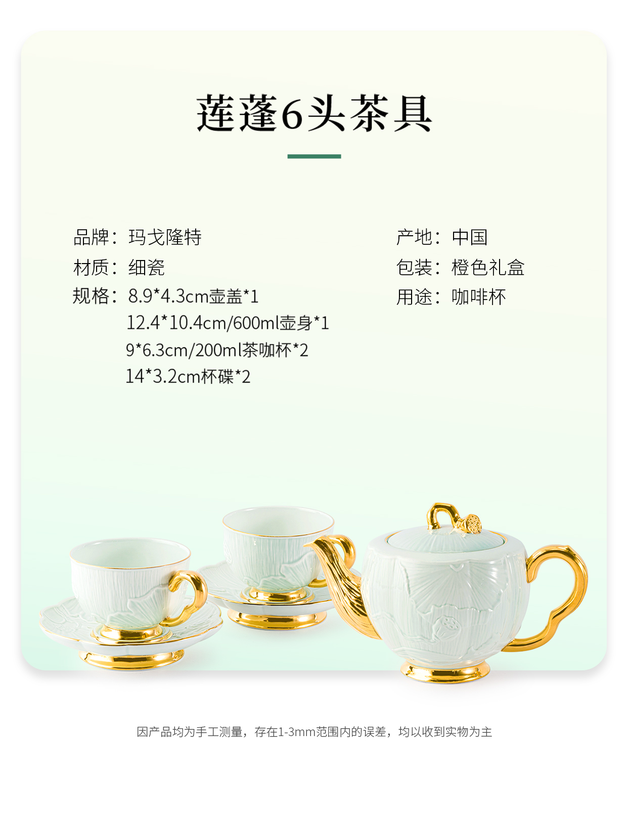 【6F】玛戈隆特福德莲生6头莲蓬茶具陶瓷家用奢华下午茶茶具套装咖啡杯