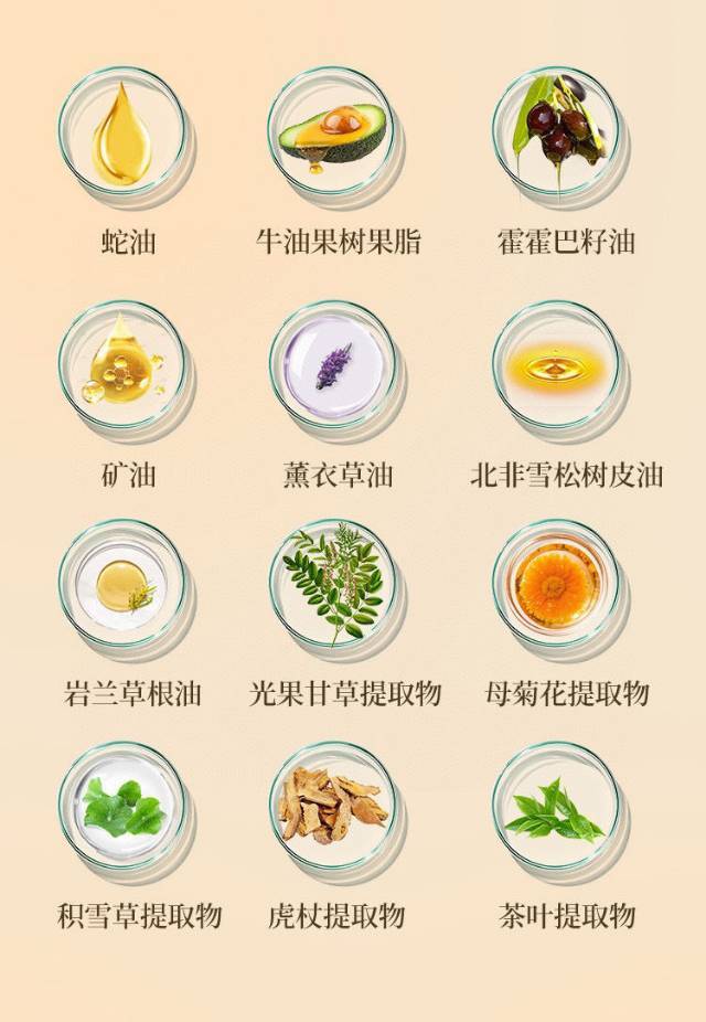 能有这么好的滋润效果,核心在于优质成分与先进技术的搭配。蛇油作为传统滋养好物,自带出色的锁水保湿力,对干裂肌肤能起到修护+补水的双重作用;再搭配霍霍巴籽油、牛油果树果脂,就像给肌肤裹上一层保湿膜,深层锁住水分,不让干燥趁虚而入;更有积雪草提取物、母菊花提取物等植物成分加持,温和不刺激,就算是敏感肌、老人或小孩,也不用担心泛红不适。