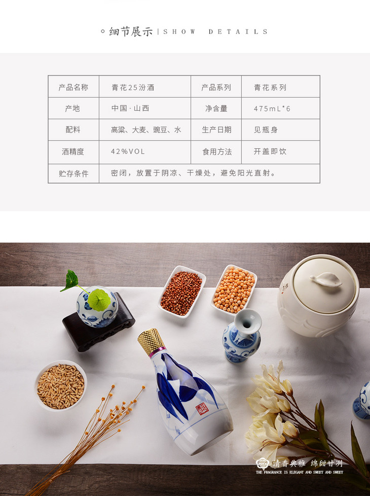山西杏花村汾酒 42度青花25汾酒475mL*6瓶整箱装清香型国产白酒