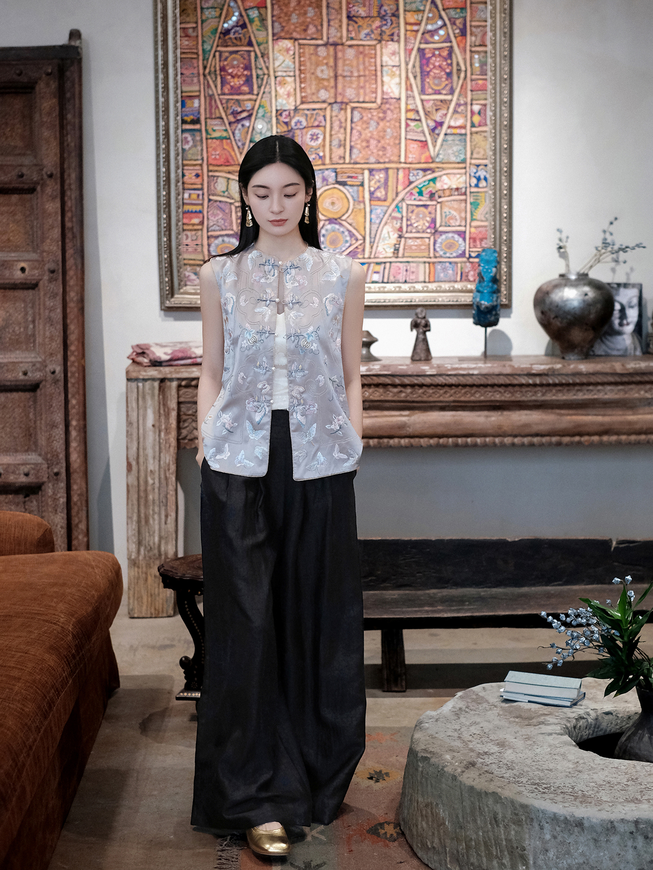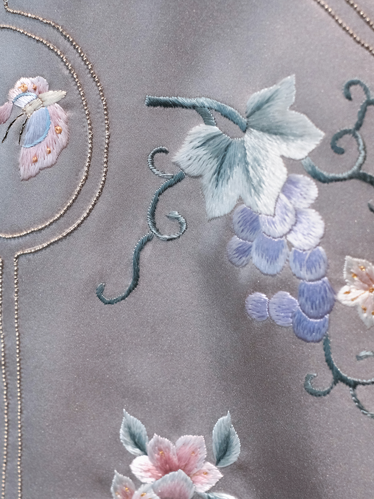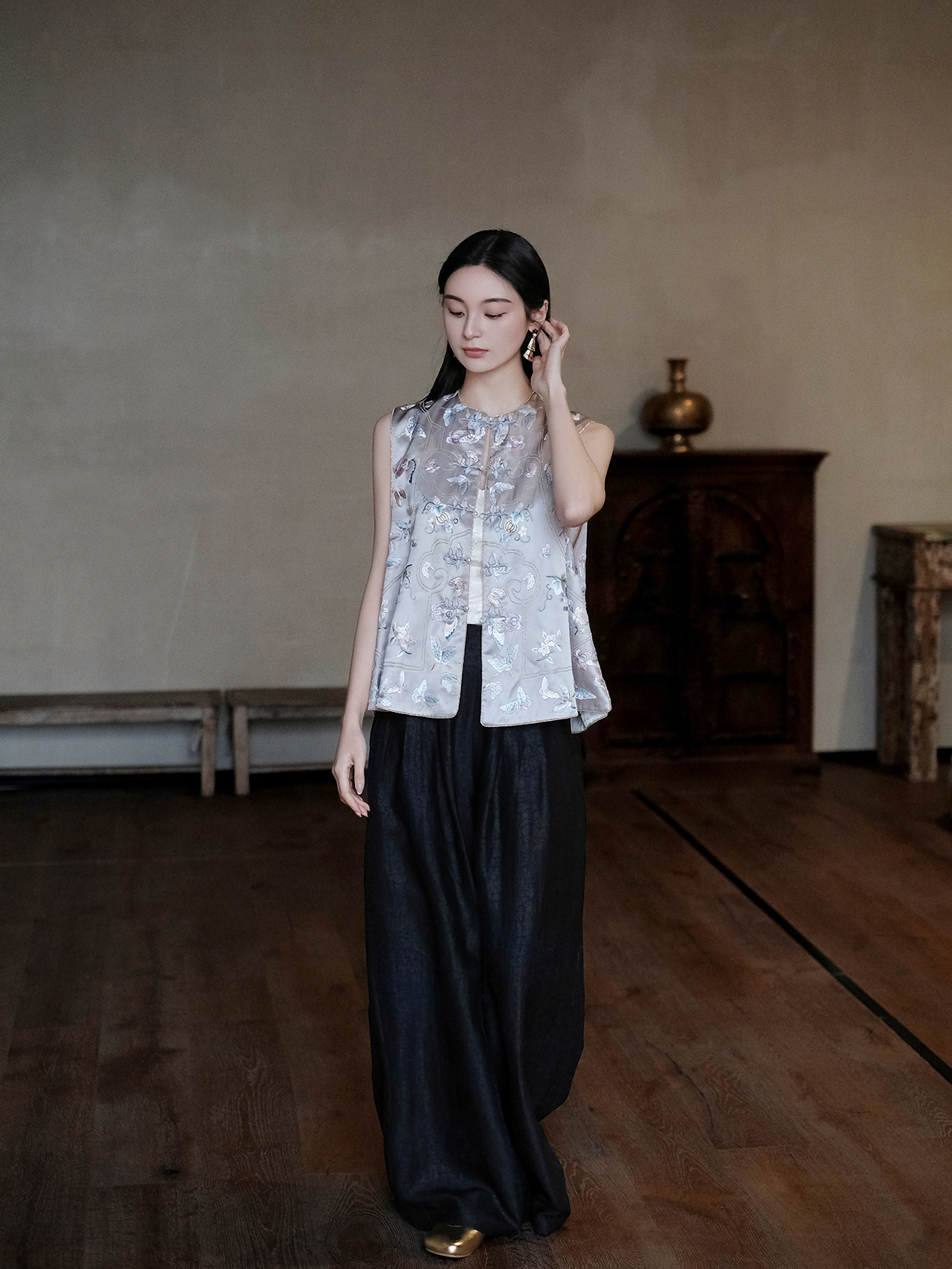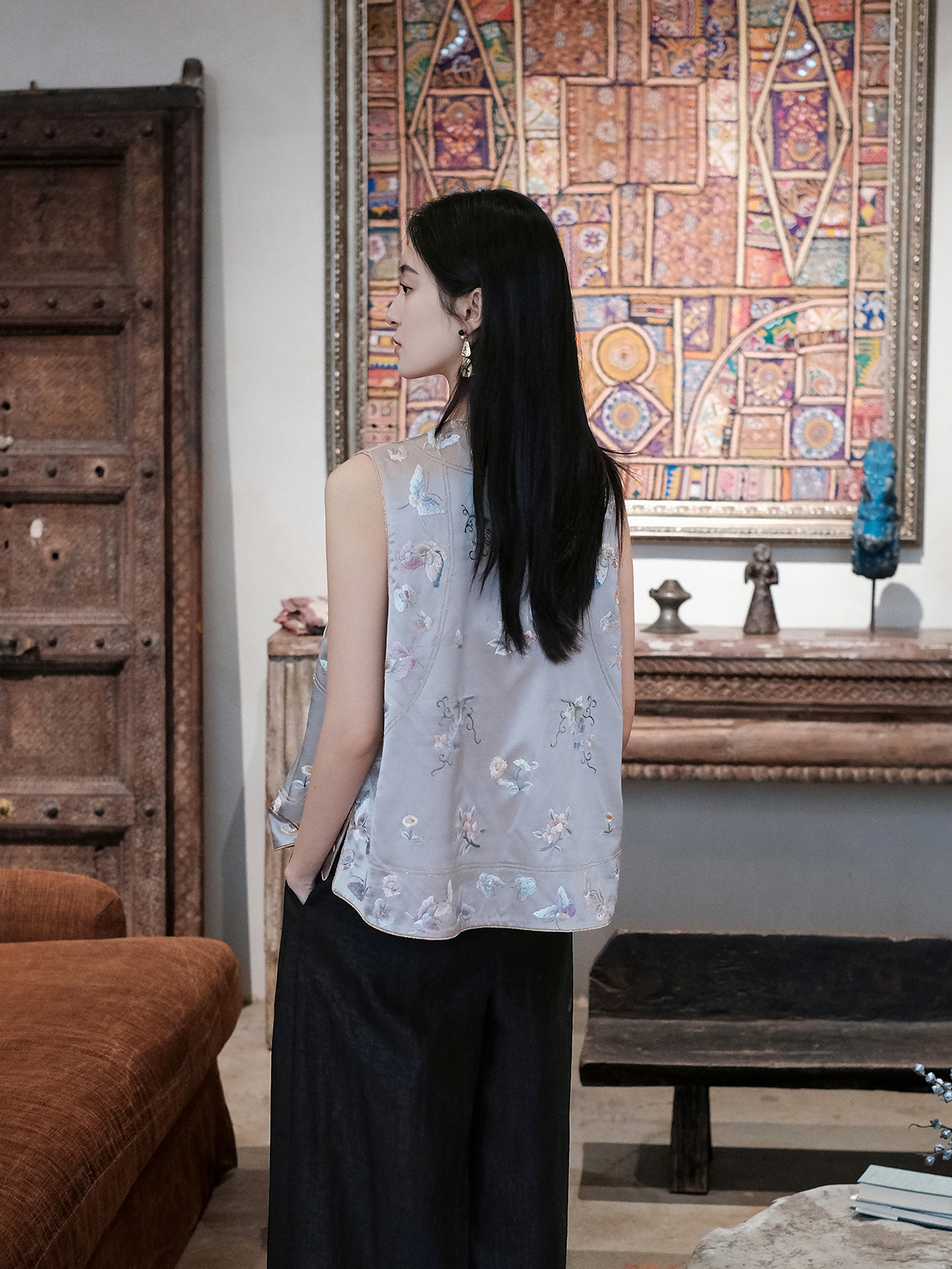 盛唐牡丹盛奢系列 | 青烟色蝴蝶手工刺绣马甲