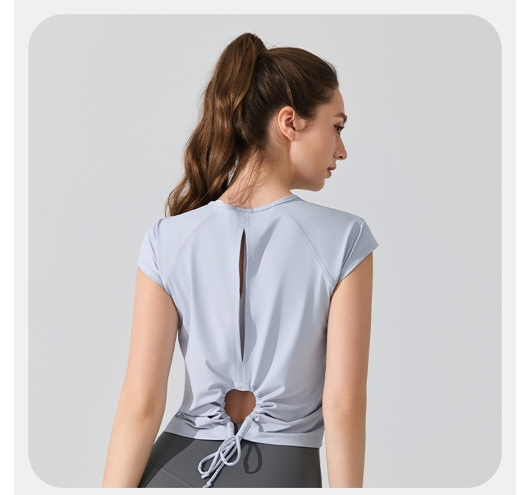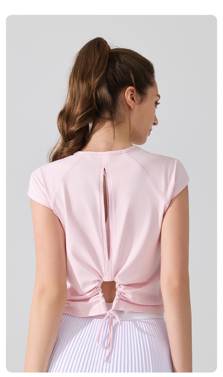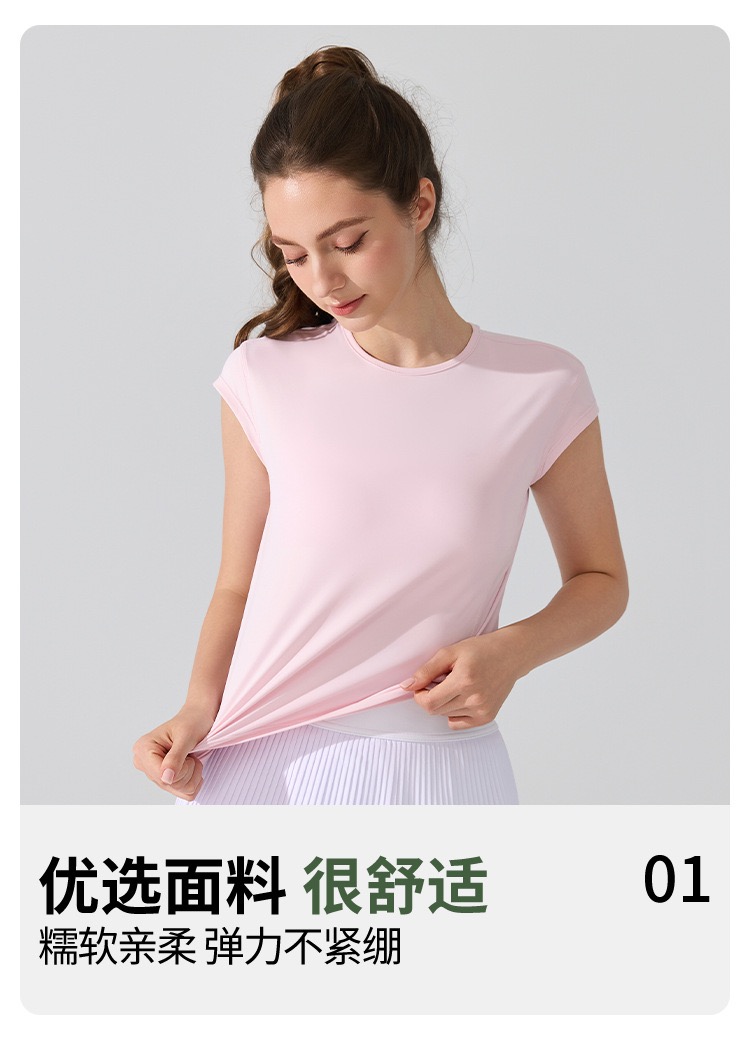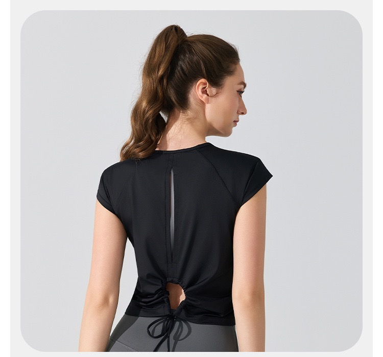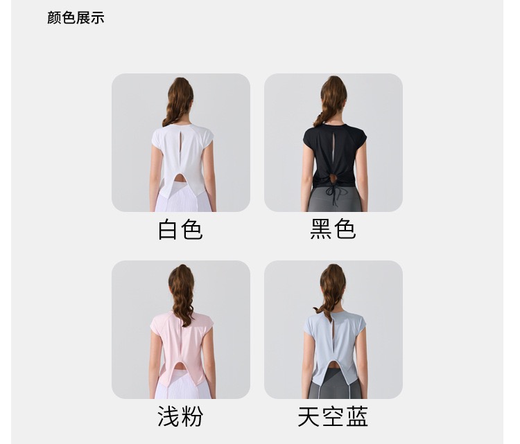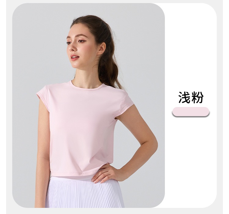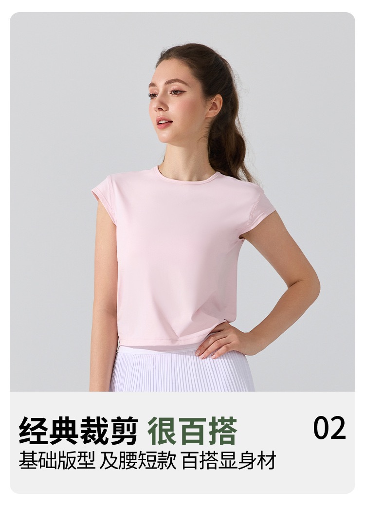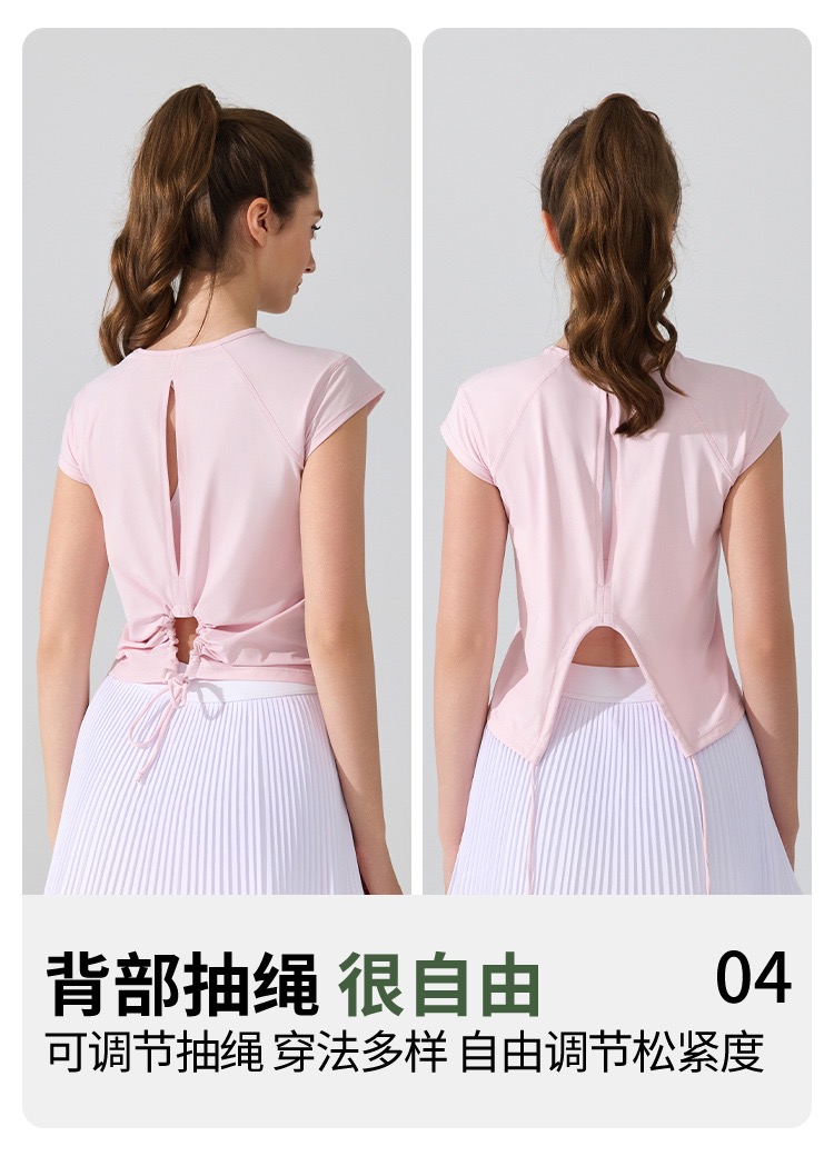 新款原纱美背短袖t恤凉感透气跑步镂空运动健身瑜伽服上衣女防晒UPF50JLYD408