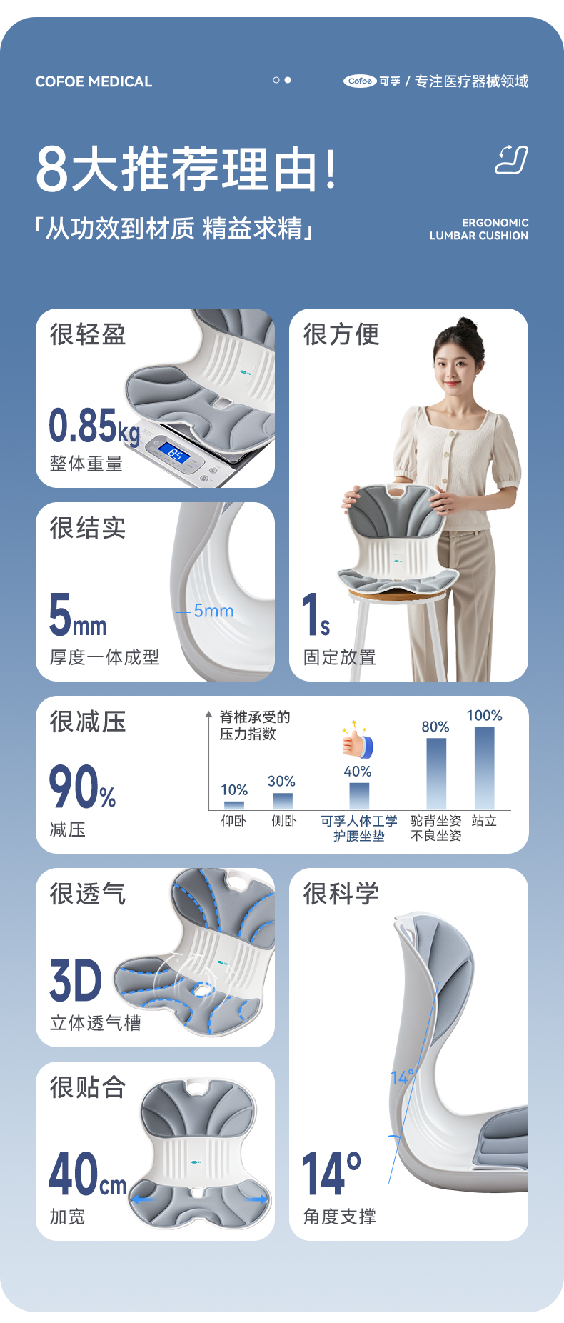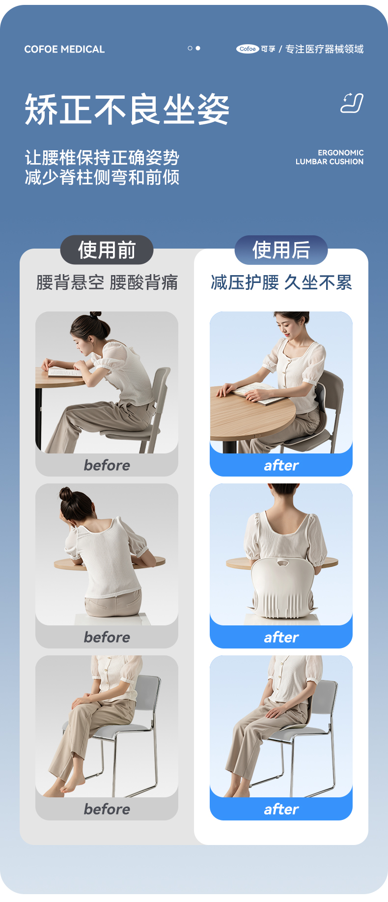 可孚医用颈椎牵引器人体工学护腰坐垫组合装