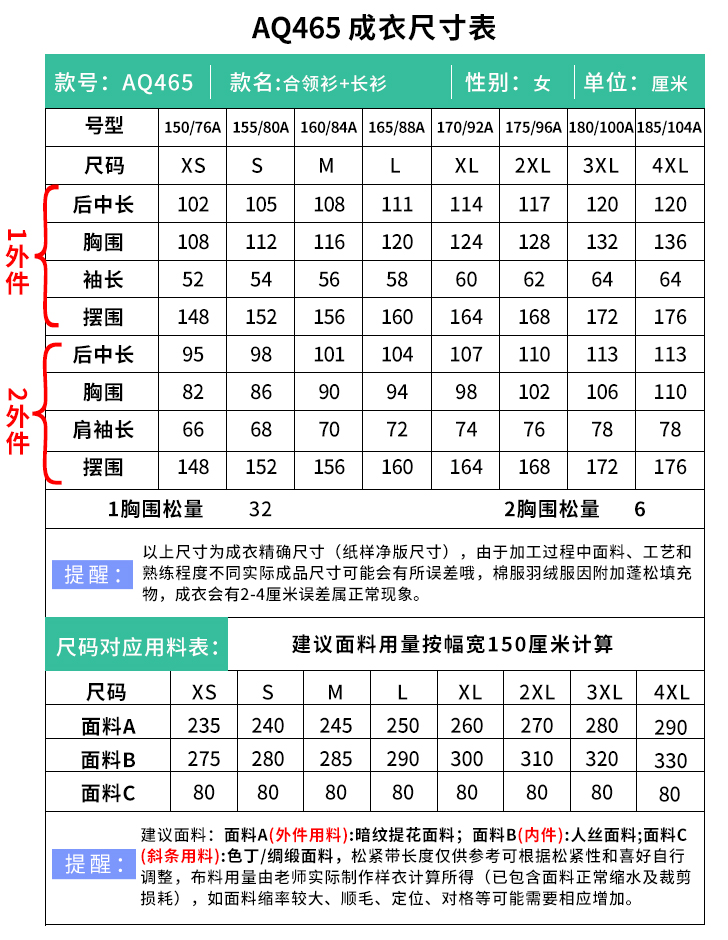 裁缝学苑AQ465新中式立领对襟长衫合领衫纸样汉服女装上衣两件套样板