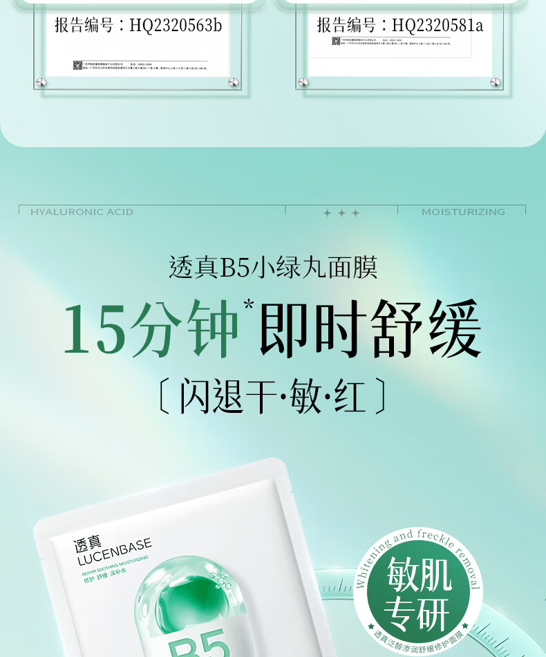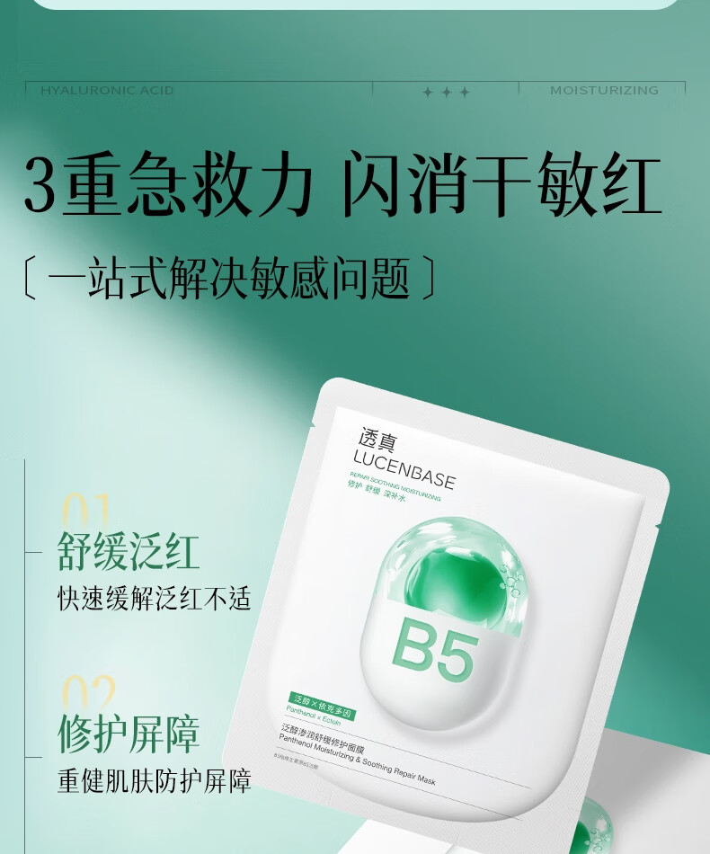 【舒缓修护】透真b5补水面膜泛醇舒缓肌肤屏障泛红可搭医面膜用晒后修复男女
