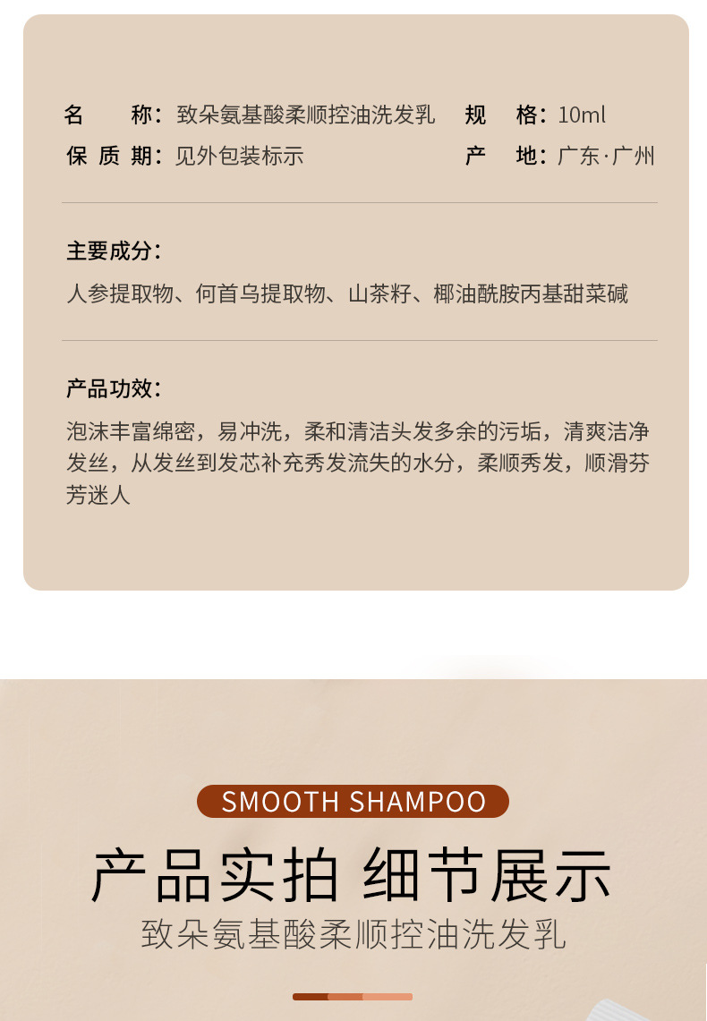 致朵氨基酸柔顺控油洗发乳10ml 深层洁净柔顺秀发改善毛躁清爽洗发水条装旅行便携装1条