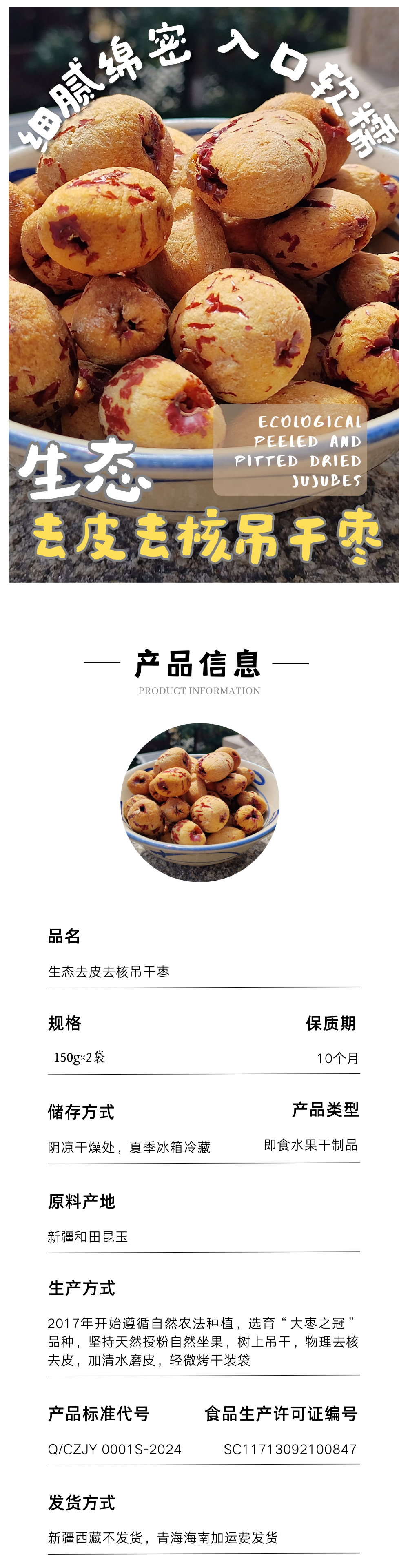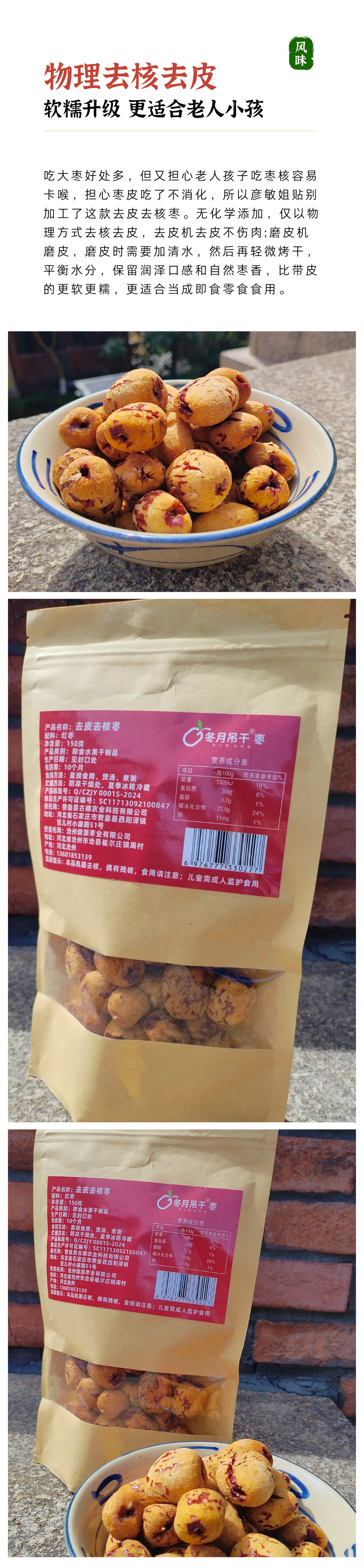 【同行精选】去皮去核枣150g*2袋 有机冬月吊干枣加工 细腻绵密 入口软糯