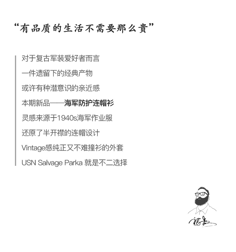 工装精选 美式复古二战海军白色外套人字纹半开襟防护连帽衫卫衣男
