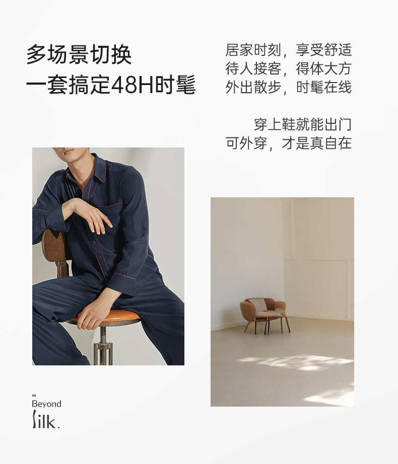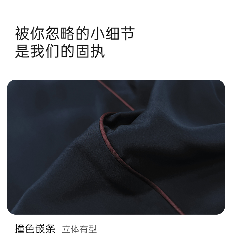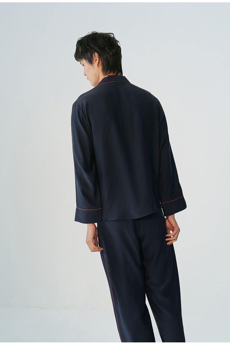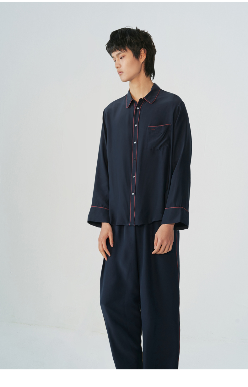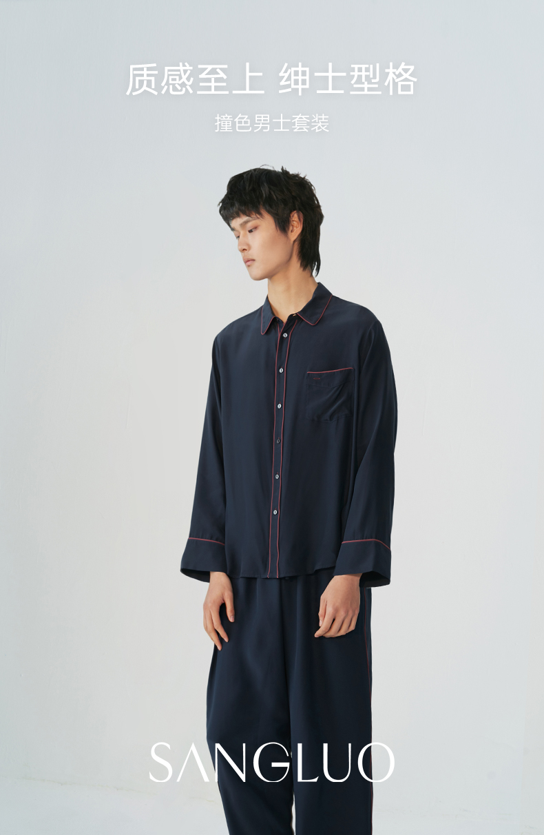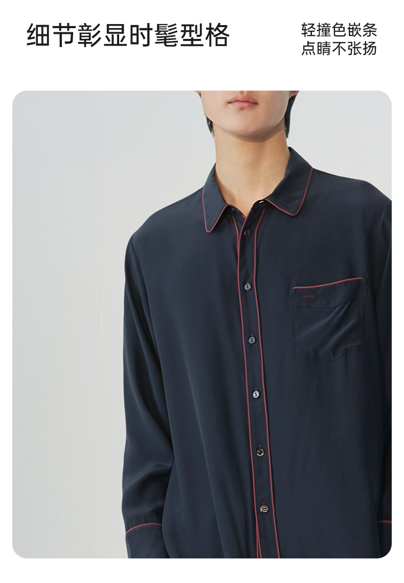 沉稳男士』桑罗藏青色真丝睡衣100%桑蚕丝撞色男士家居服可外穿