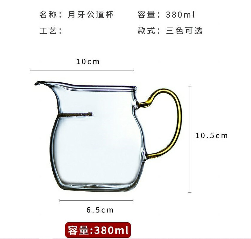 益思泉丨 红绿白月牙 带过滤 玻璃公道杯 茶海 茶具 高硼硅玻璃 耐热加厚 350ml 可电陶炉加热