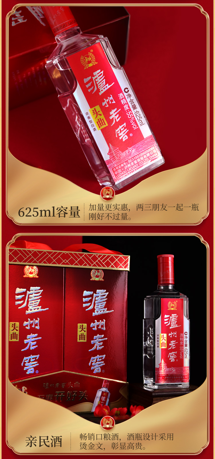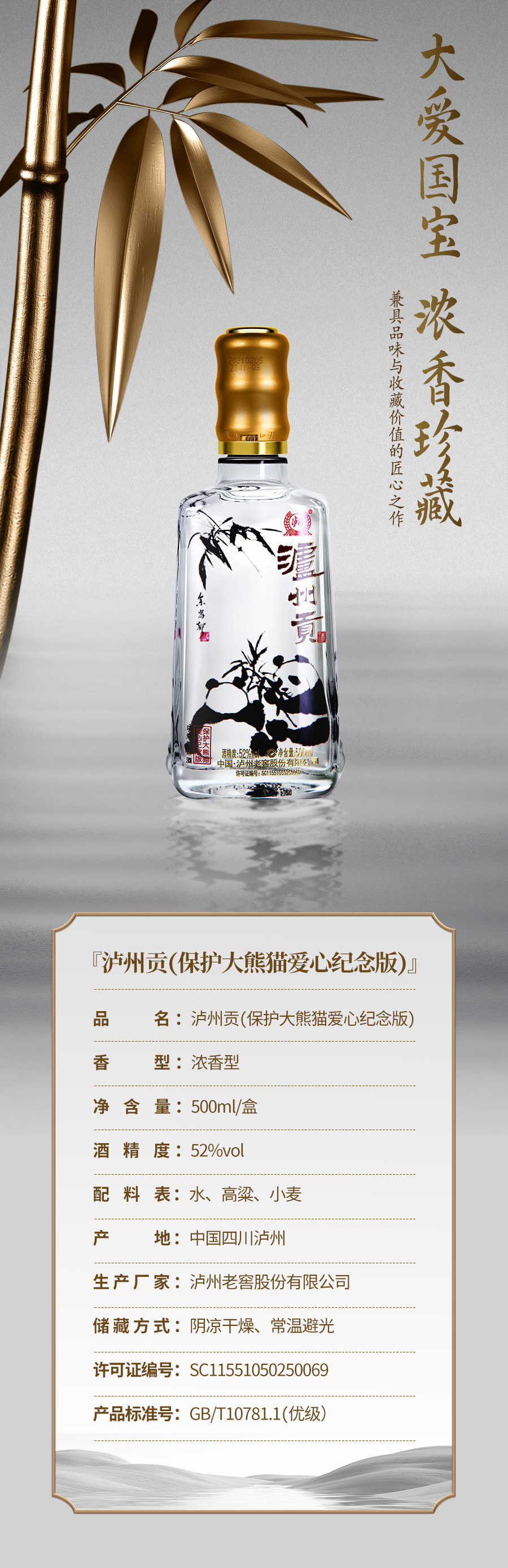 【699元钜惠超值组合】52度泸州贡保护大熊猫爱心纪念版*6瓶(非原箱) + 52度六年窖头曲礼盒*1盒 + 55度625ml头曲礼盒*2盒 泸州老窖官方旗舰店