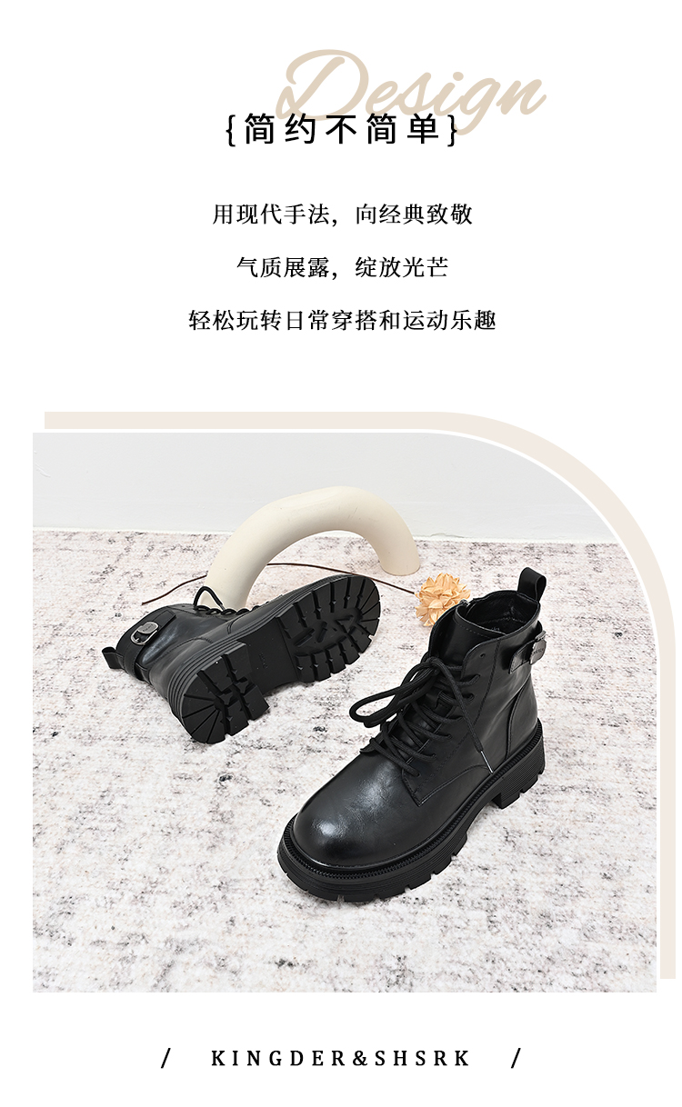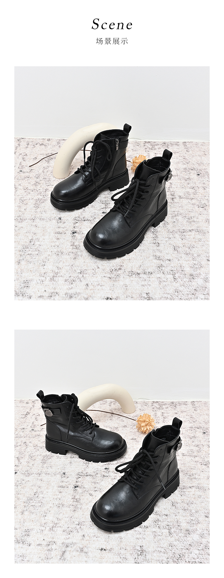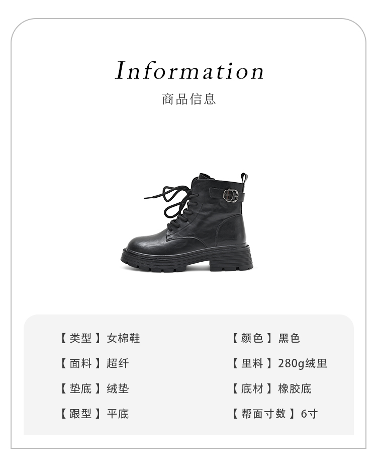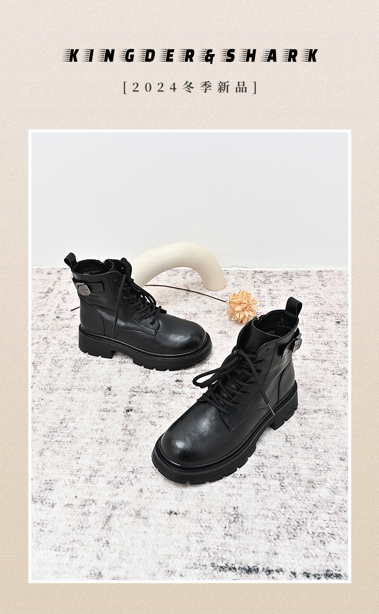 经典鲨2024年冬季新款百搭黑色加绒侧拉链平底通勤短筒靴女KW178-D58171