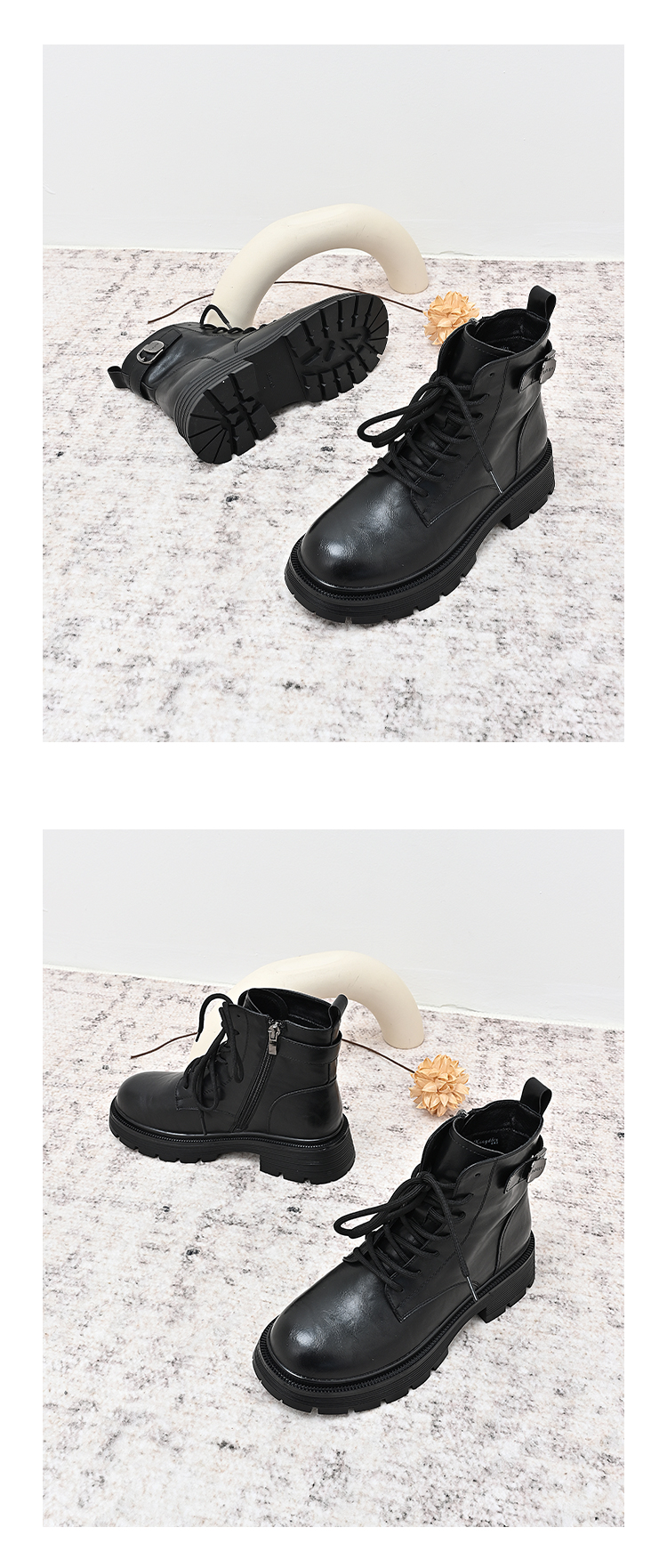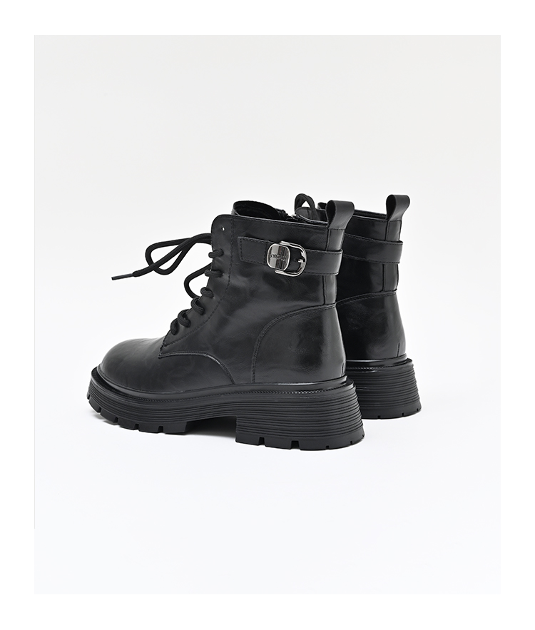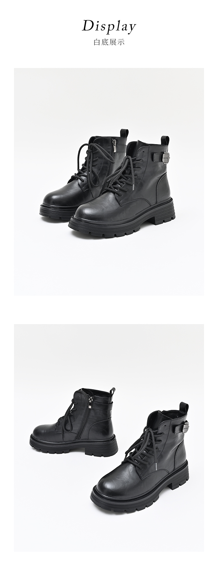 经典鲨2024年冬季新款百搭黑色加绒侧拉链平底通勤短筒靴女KW178-D58171