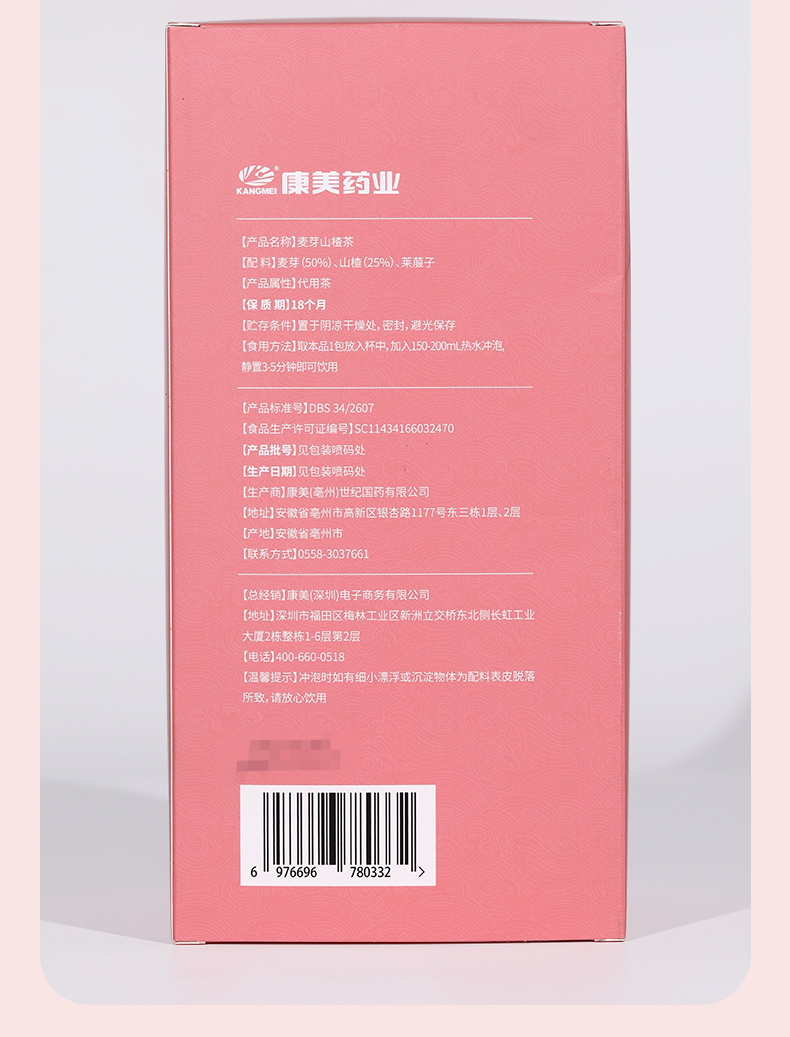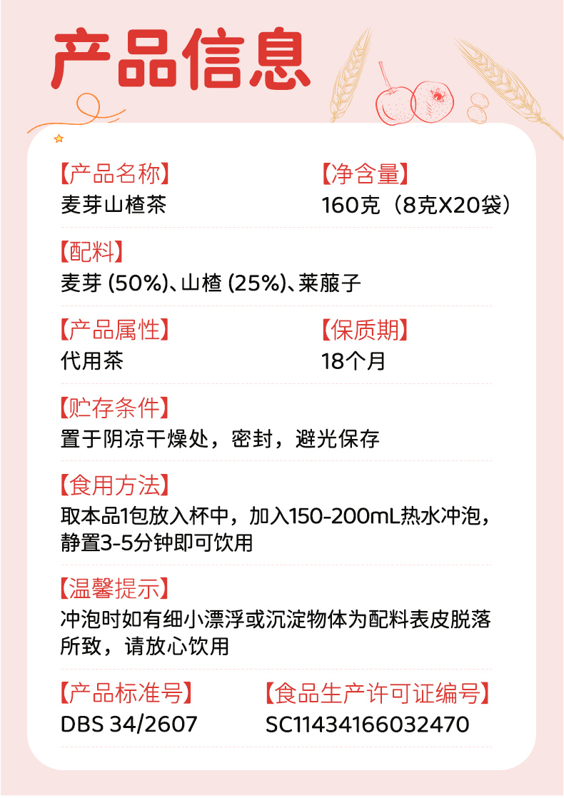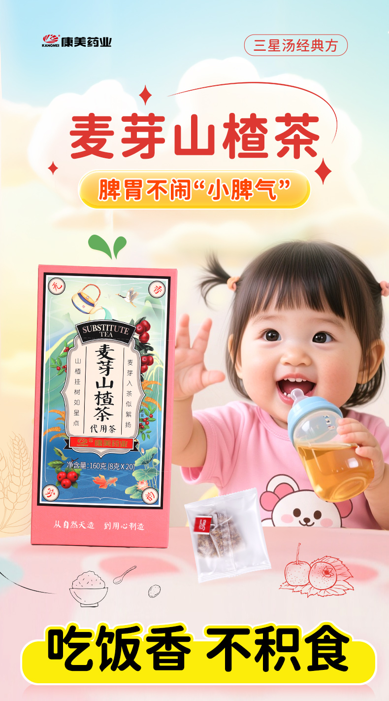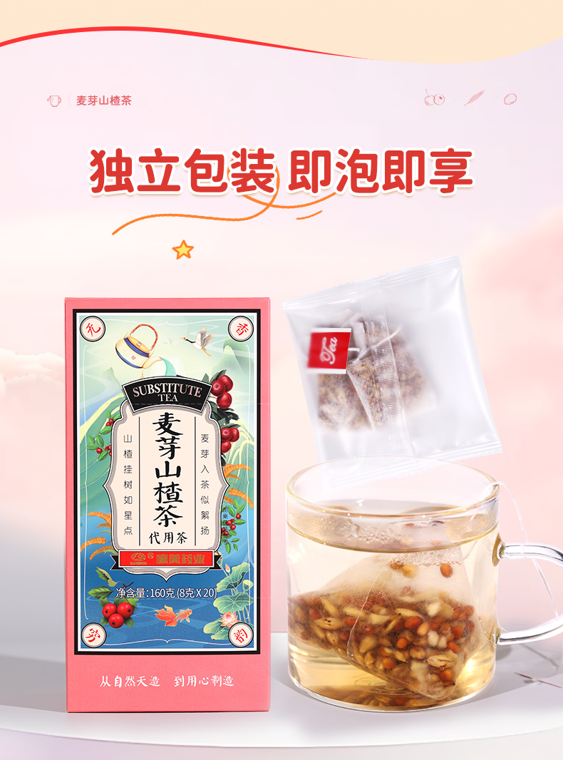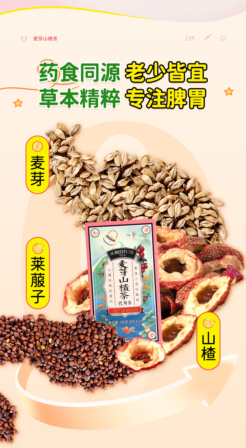 康美麦芽山楂茶160g/盒(8g*20袋)袋泡茶儿童茶饮养生花草茶