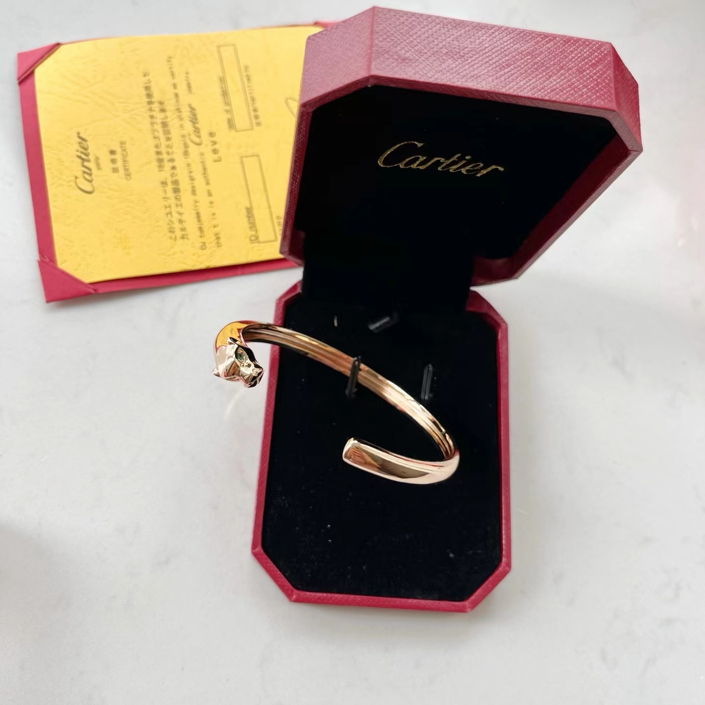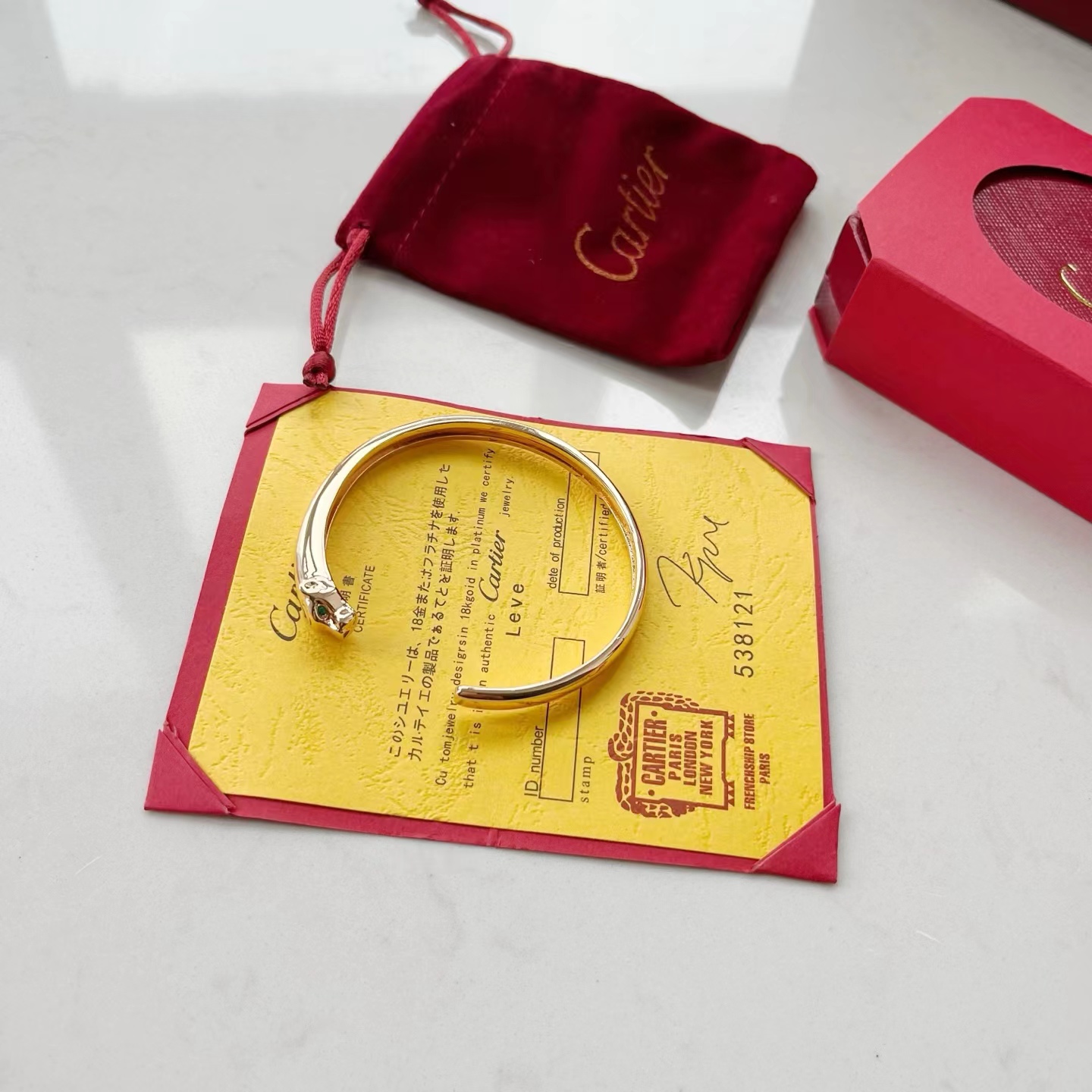 猎豹开口手镯特别有个性的一款手镯碧绿的眼睛 香槟金的配色结合它不仅是一件配饰珠宝更是一种时尚的享受体验猎豹是符号象征着力量、独立女性的魅力简约时尚的设计风格 百搭气场全开 焦点就在这个点睛之笔自留款 送礼S选配全套包装