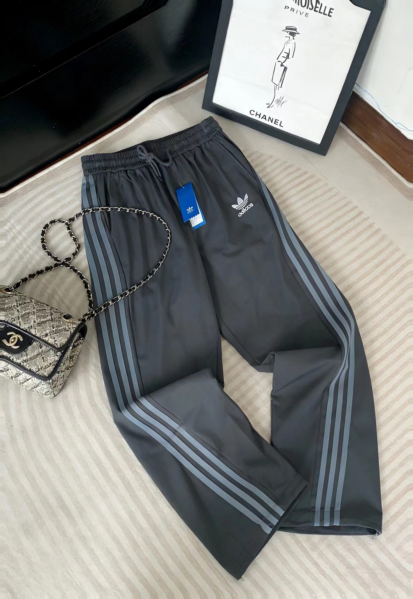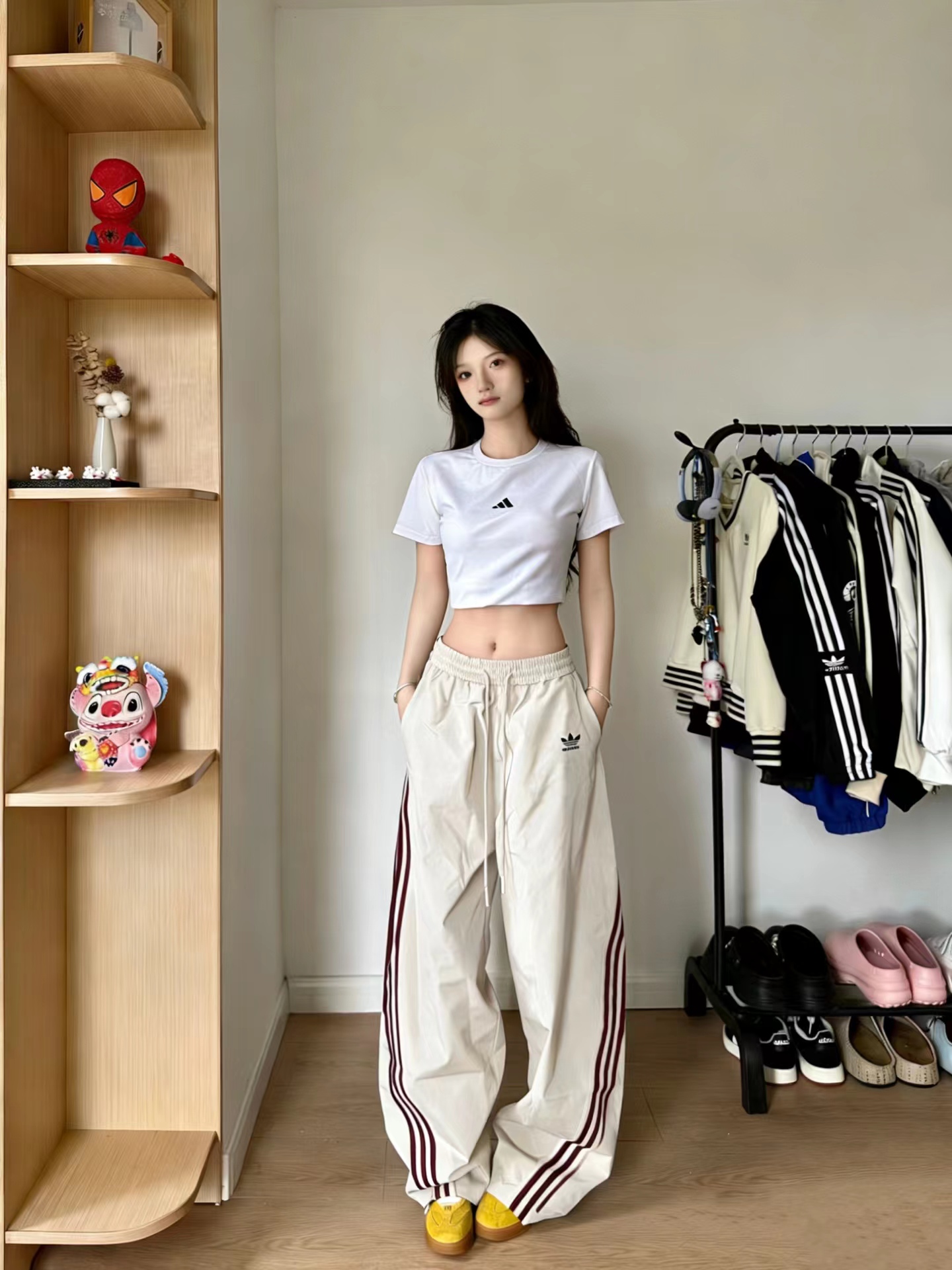 条纹运动裤 | 百搭不挑人的松弛感神裤【面料质感】甄选亲肤透气的梭织面料,垂坠感拉满,软糯不闷汗,久穿不易变形起球,常通勤或运动都能自在舒展,贴肤感像被云朵包裹,四季都好穿。【版型设计】高腰松紧抽绳腰头,不勒肚还能悄悄拉高腰线;直筒阔腿裤型,wan美修饰腿型,藏住O型腿、肌肉腿等小瑕疵,视觉上秒变“筷子腿”,小个子也能穿出大长腿比例。【配色选择】 米白+酒红条纹:温柔复古,自带慵懒氛围感,温柔又显白? 深灰+灰蓝条纹:低调gao级,通勤休闲都适配,耐脏又耐看? 藏青+亮黄条纹:活力吸睛,街头感拉满,点亮日常穿搭? 纯黑+白条纹:jing典永不过时,显瘦百搭,闭眼入不出错【搭配思路】? 休闲风:配同系列卫衣+小白鞋,青春减龄,上学通勤都合适 街头风:搭短款上衣+棒球帽+老爹鞋,秒变美式复古辣妹 通勤风:外搭西装外套+乐福鞋,松弛感拉满,职场也能穿得舒服又时髦