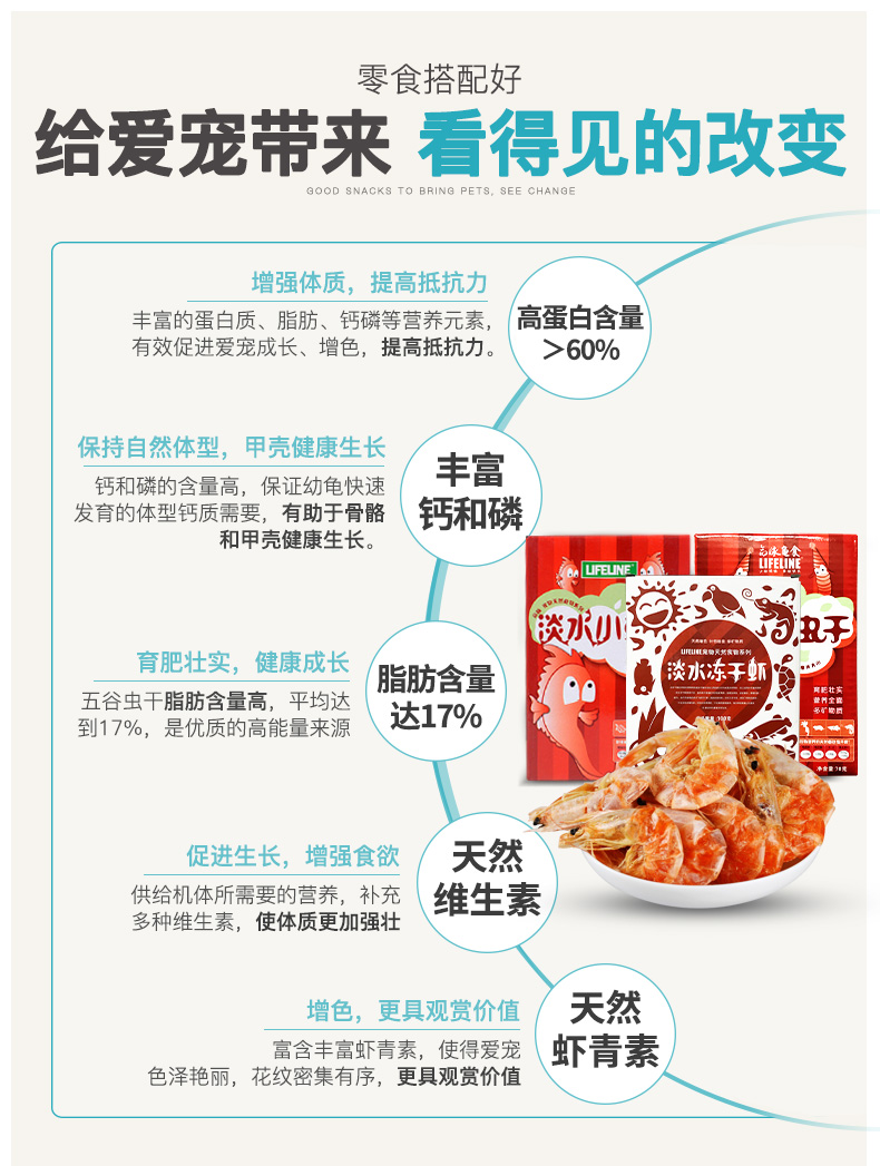 命脉【零食系列】天然淡水冻干虾虫干鱼干龟粮水龟半水龟鱼虾干龟零食【LIFELINE命脉官方正版】-分销