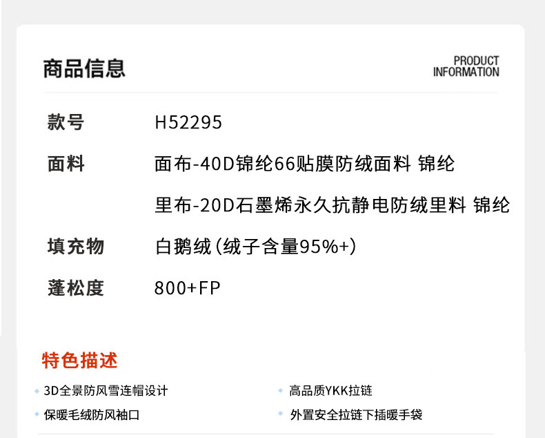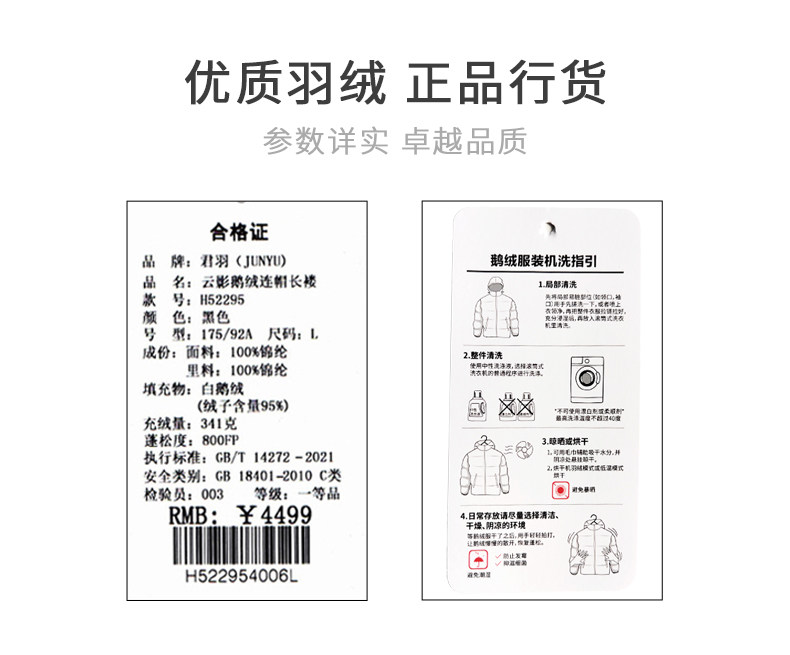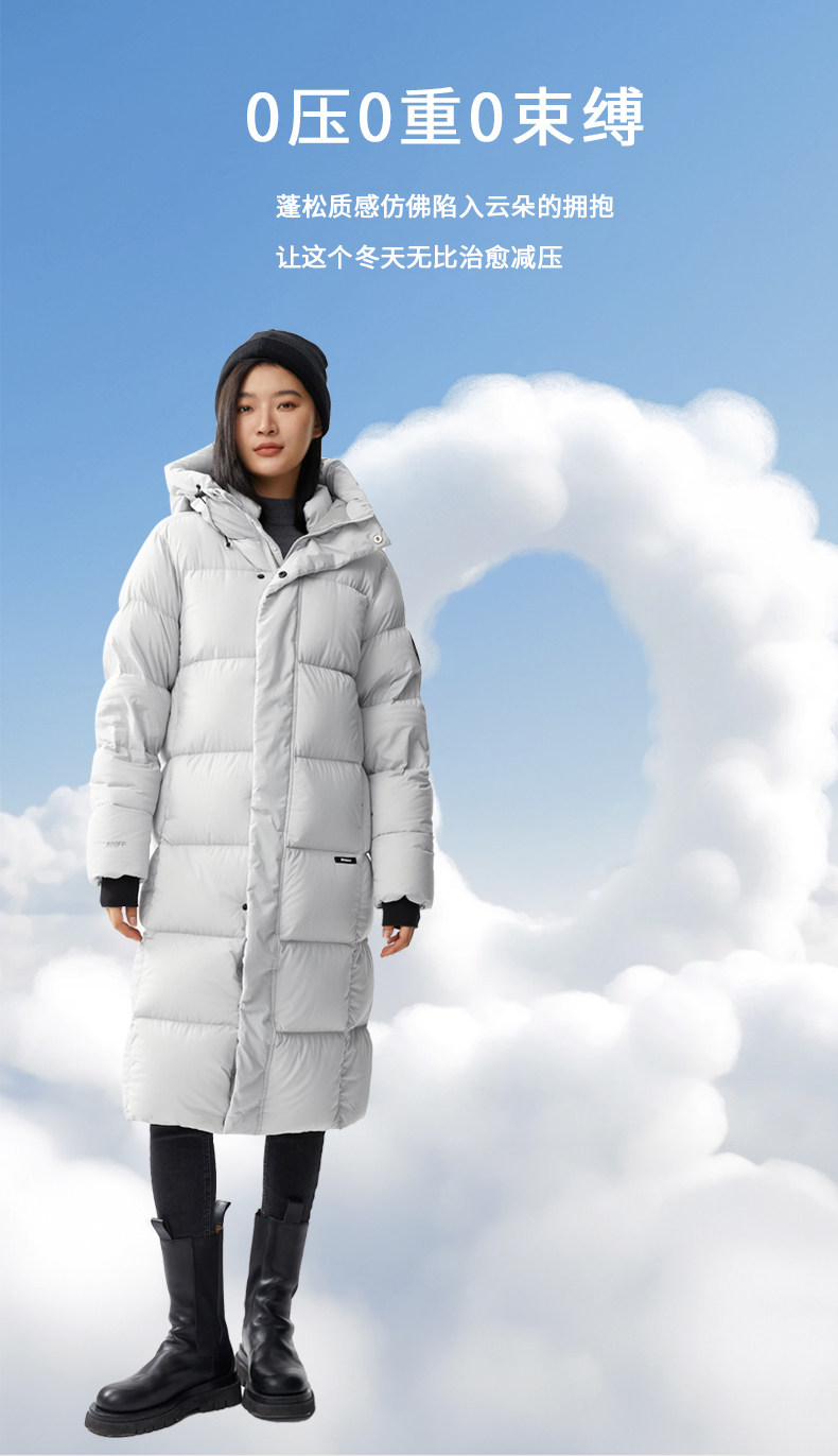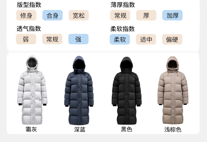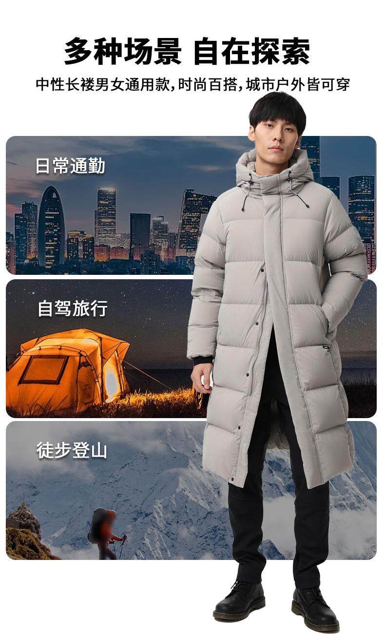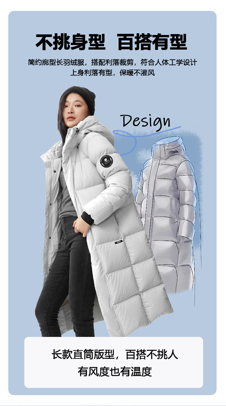君羽800蓬羽绒服男女过膝长款连帽冬季新款加厚保暖极寒鹅绒服H52295羽绒大衣
