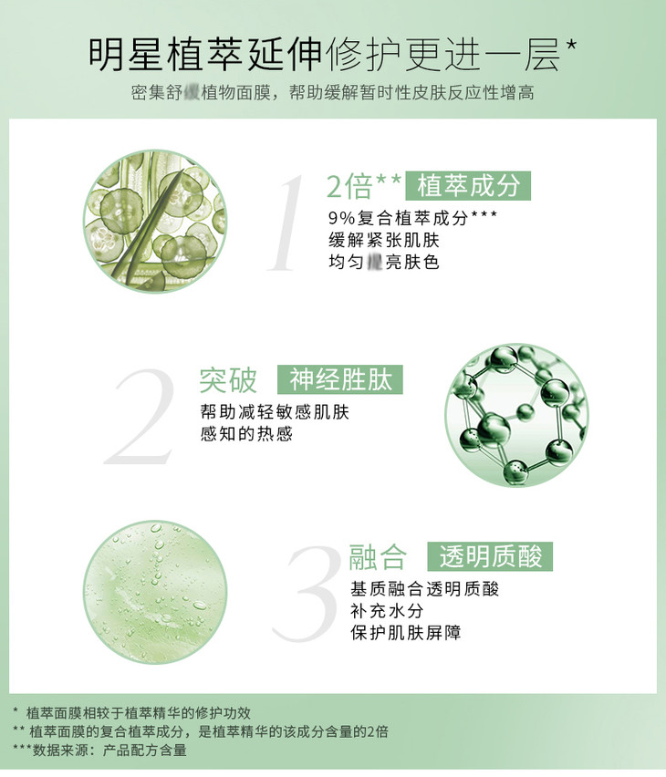 产品功效:快速huan解外因导致的肌肤敏感,修护并舍予缓肌肤,蜜集补水,焕活肌肤润泽