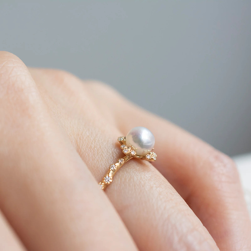 订购10周到|Shinkai-spread akoya-Akoya珍珠 钻石 戒指[日本设计师]